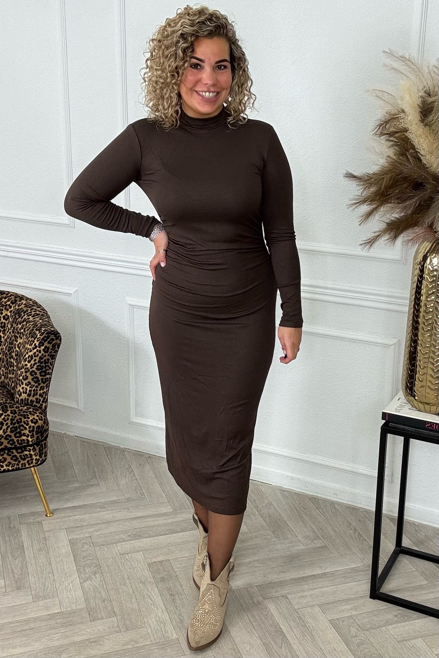 Een mooie jurk die lekker lang is. Lange mouwen en een coll! Shop de longsleeve turtleneck maxi dress nu in brown!