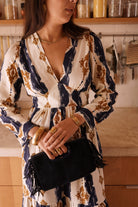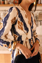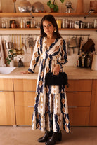 Wat een fantastische jurk! In een mooi lang model en een leuke print! Shop hem nu in marine.