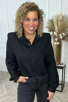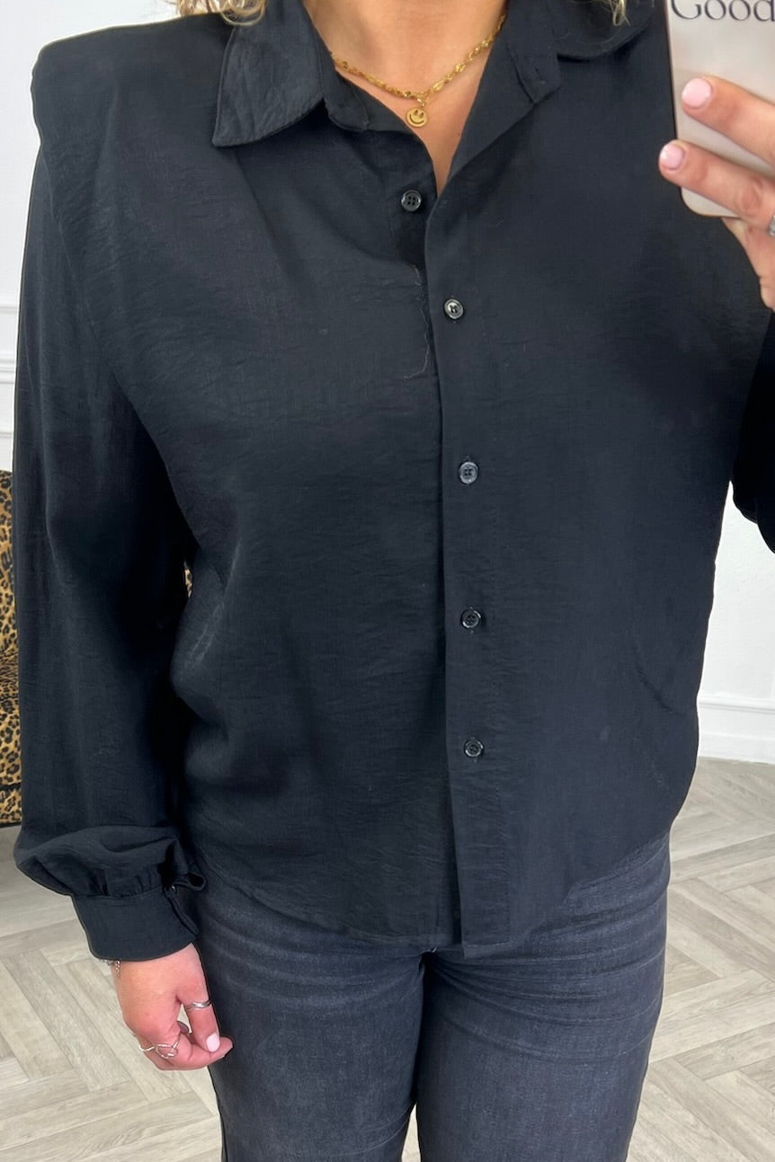We hebben een prachtige nieuwe blouse met schoudervulling binnen! Shop de celeste shoulder blouse nu in black!