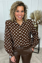 Celeste Shoulder Blouse - Brown Dotted