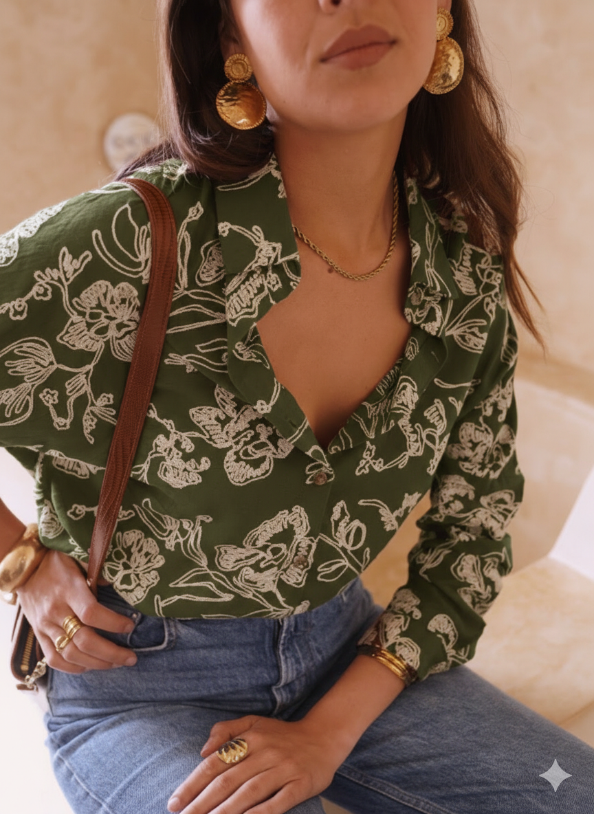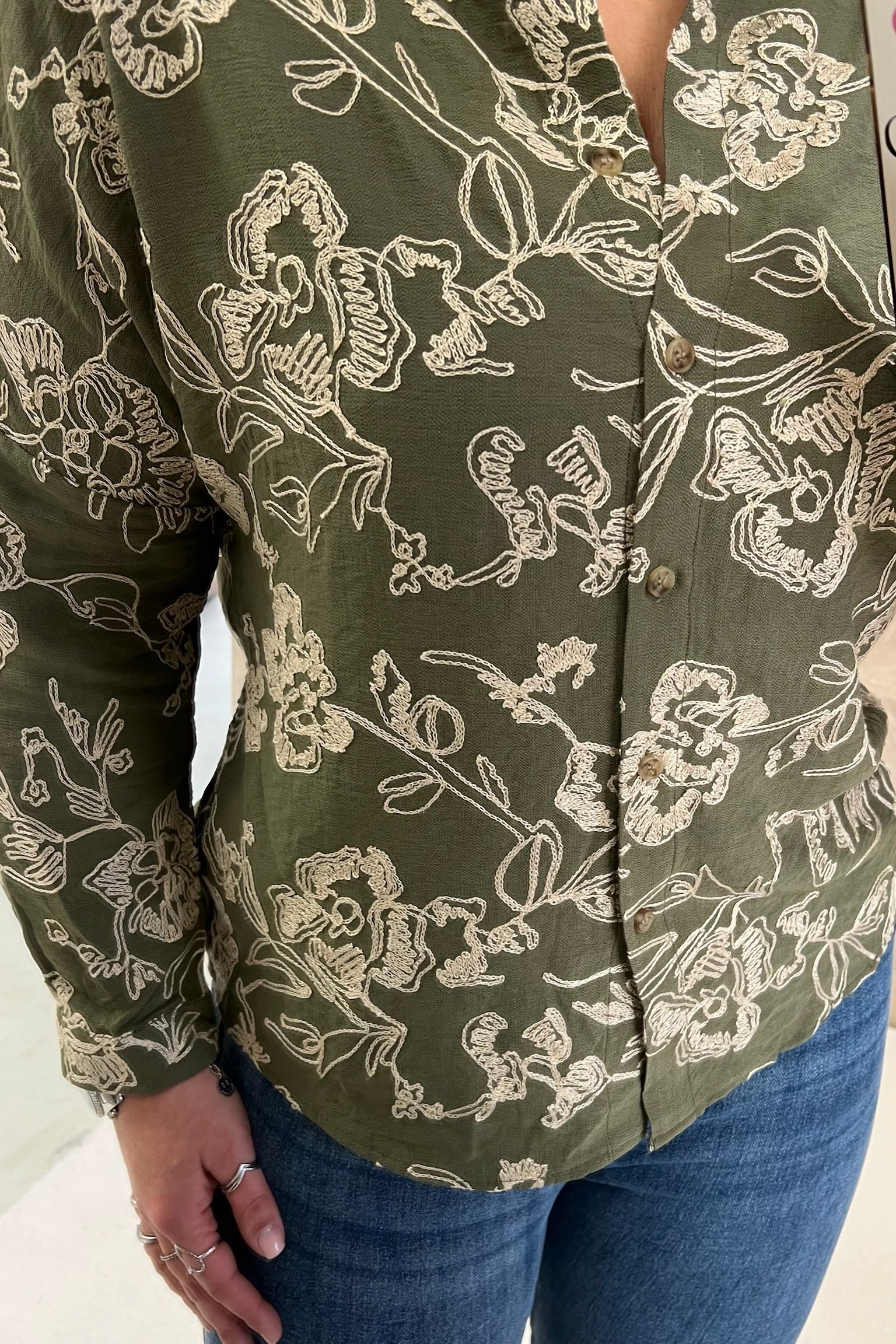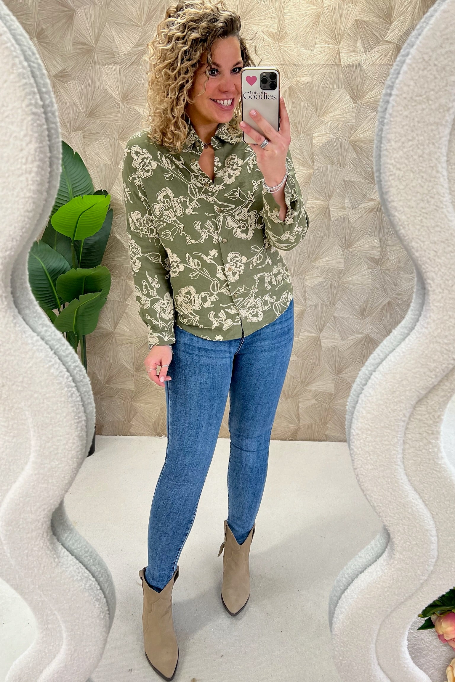 Wat een heerlijke viscose blouse is dit, met een super leuk printje en een mooi kraag! Shop hem in Armygreen!