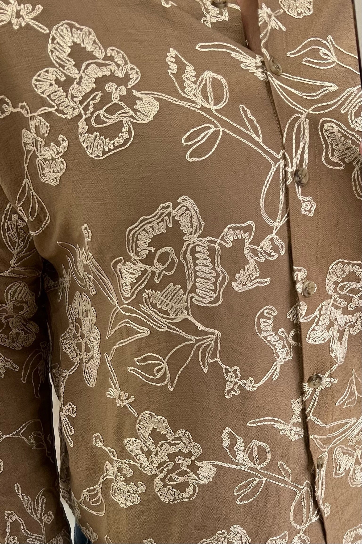 Wat een heerlijke viscose blouse is dit, met een super leuk printje en een mooi kraag! Shop hem in Taupe!