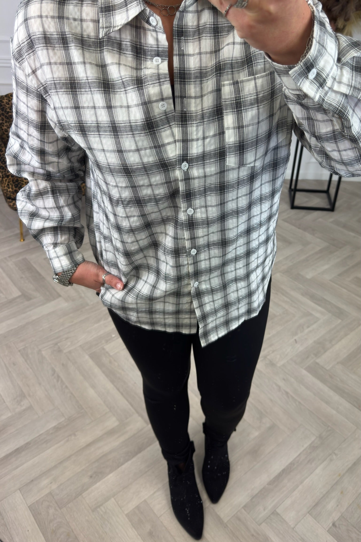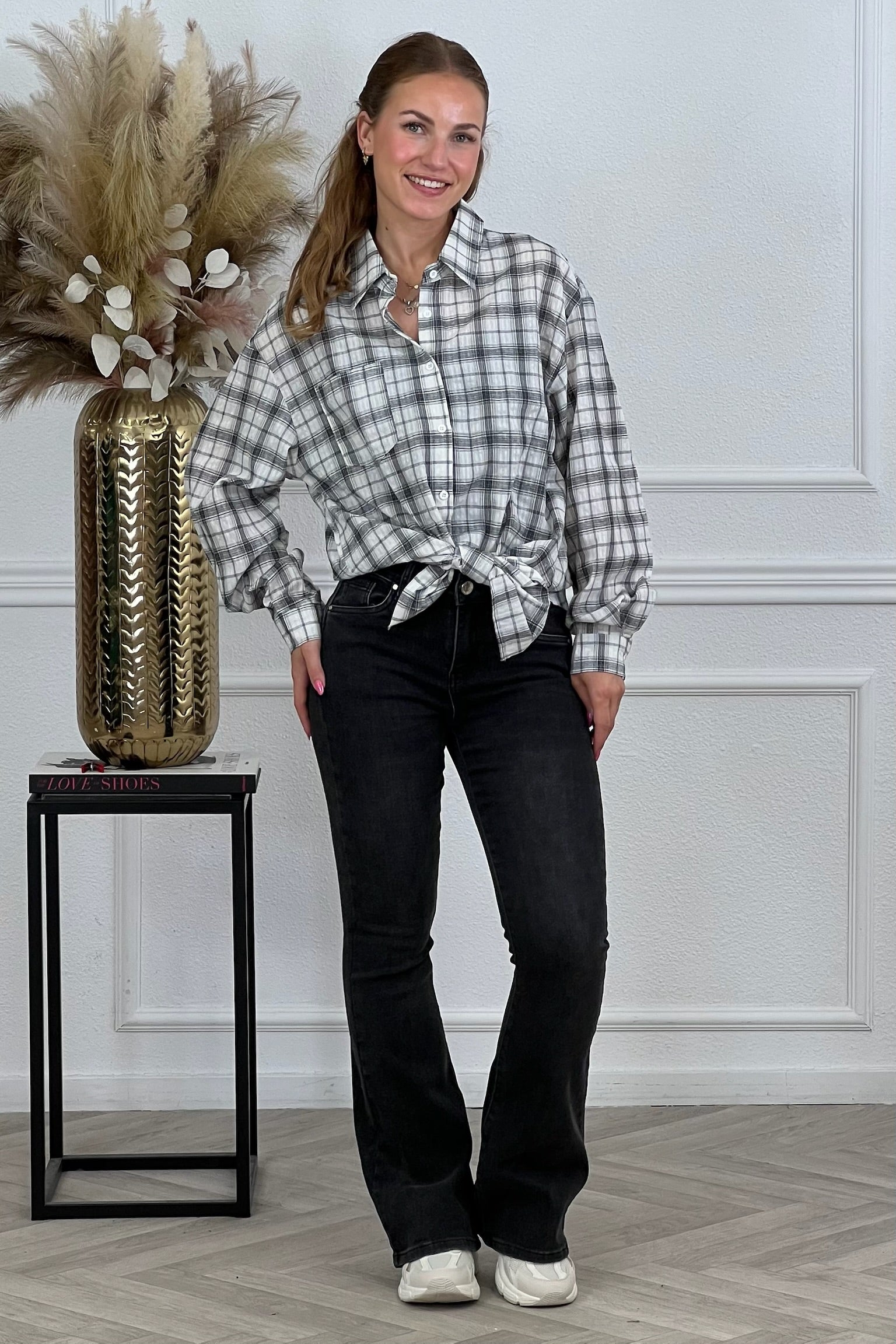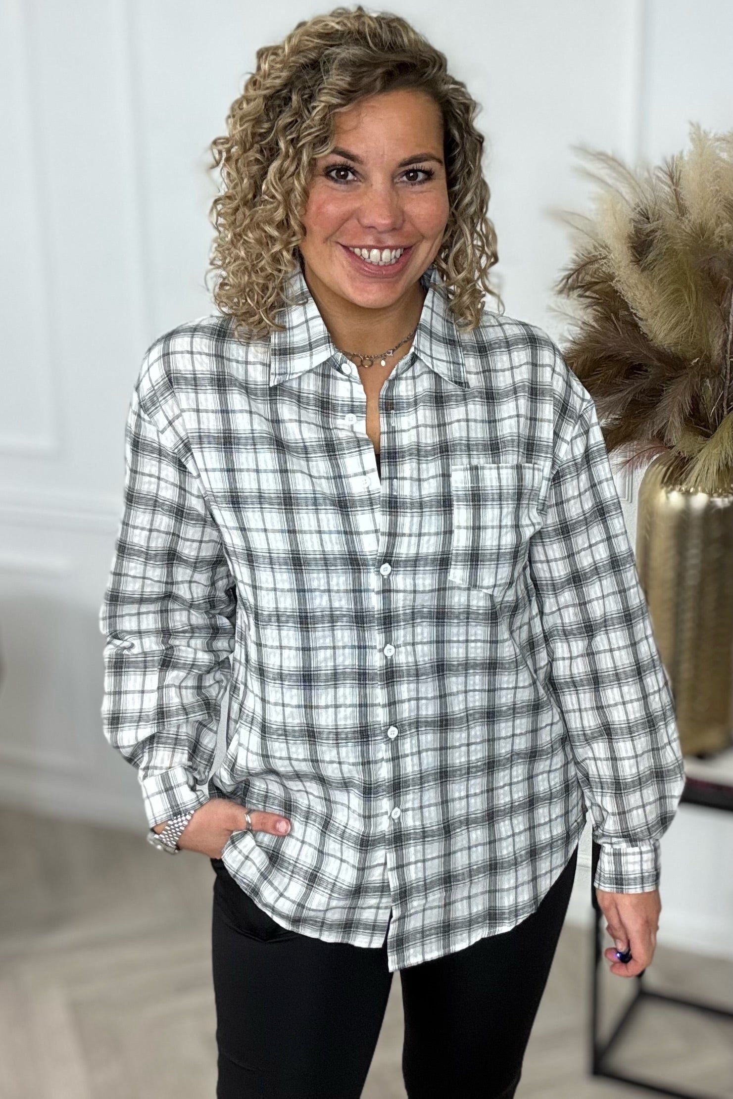 Deze blouse is toch zo leuk! Shop deze mooie oversized, geruite blouse nu in grey!