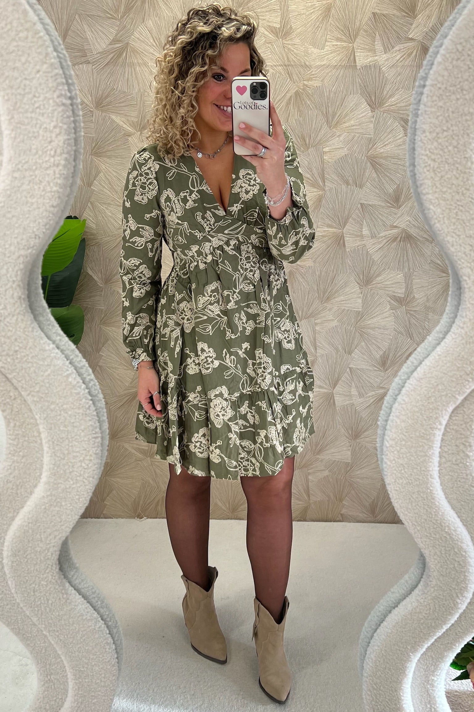 Een heerlijk zacht jurkje met een enig patroon! Shop de ivy flower dress nu in Armygreen.