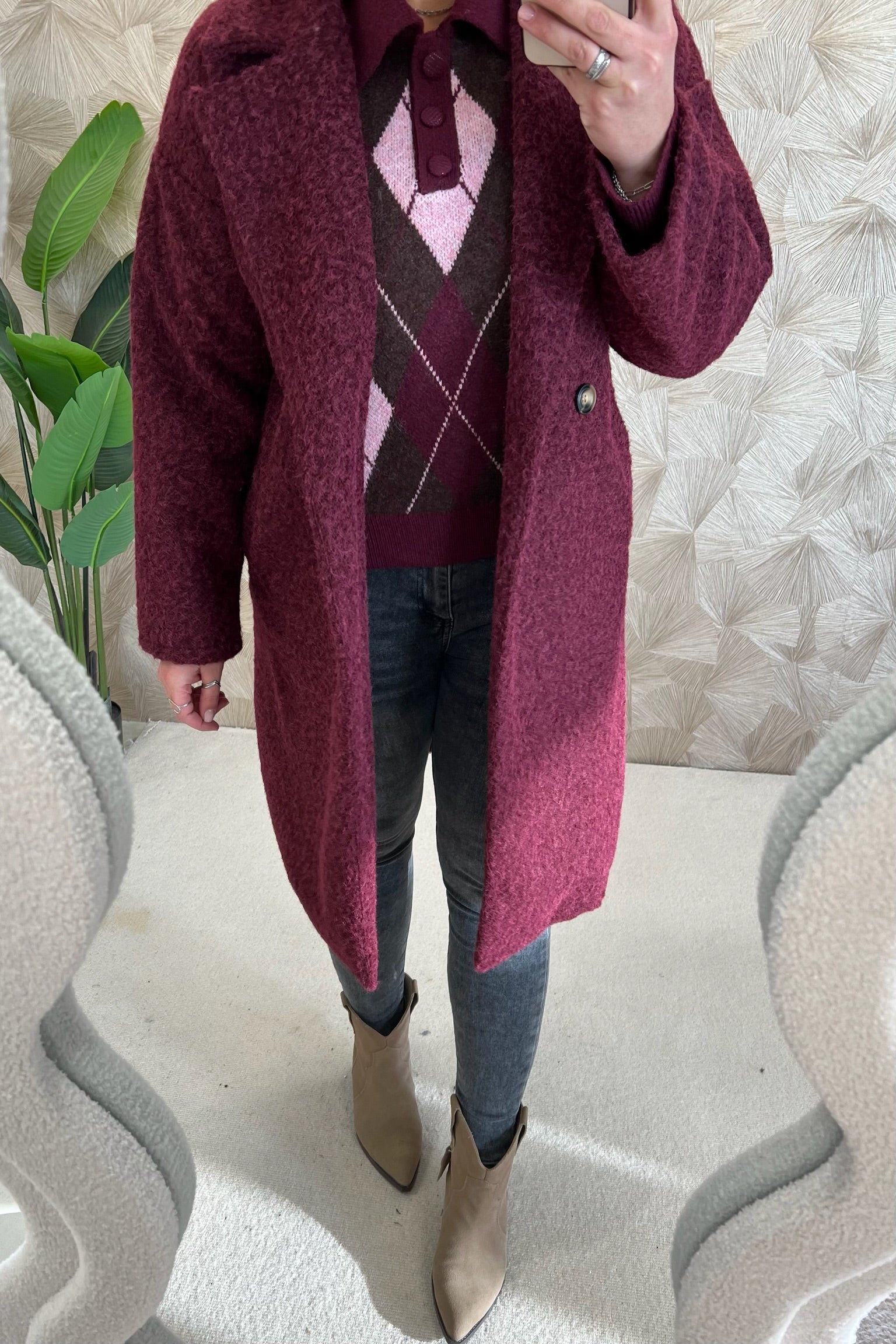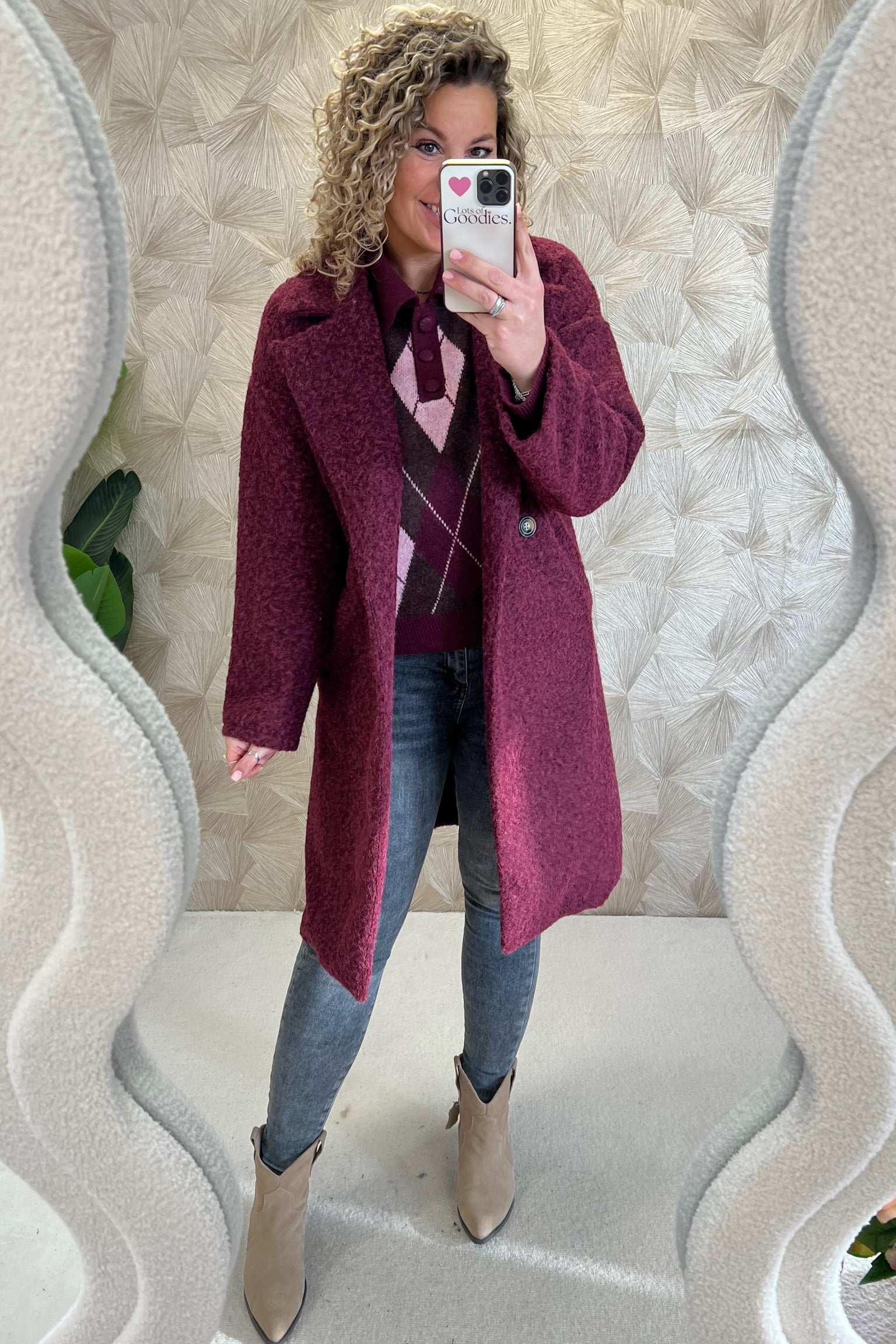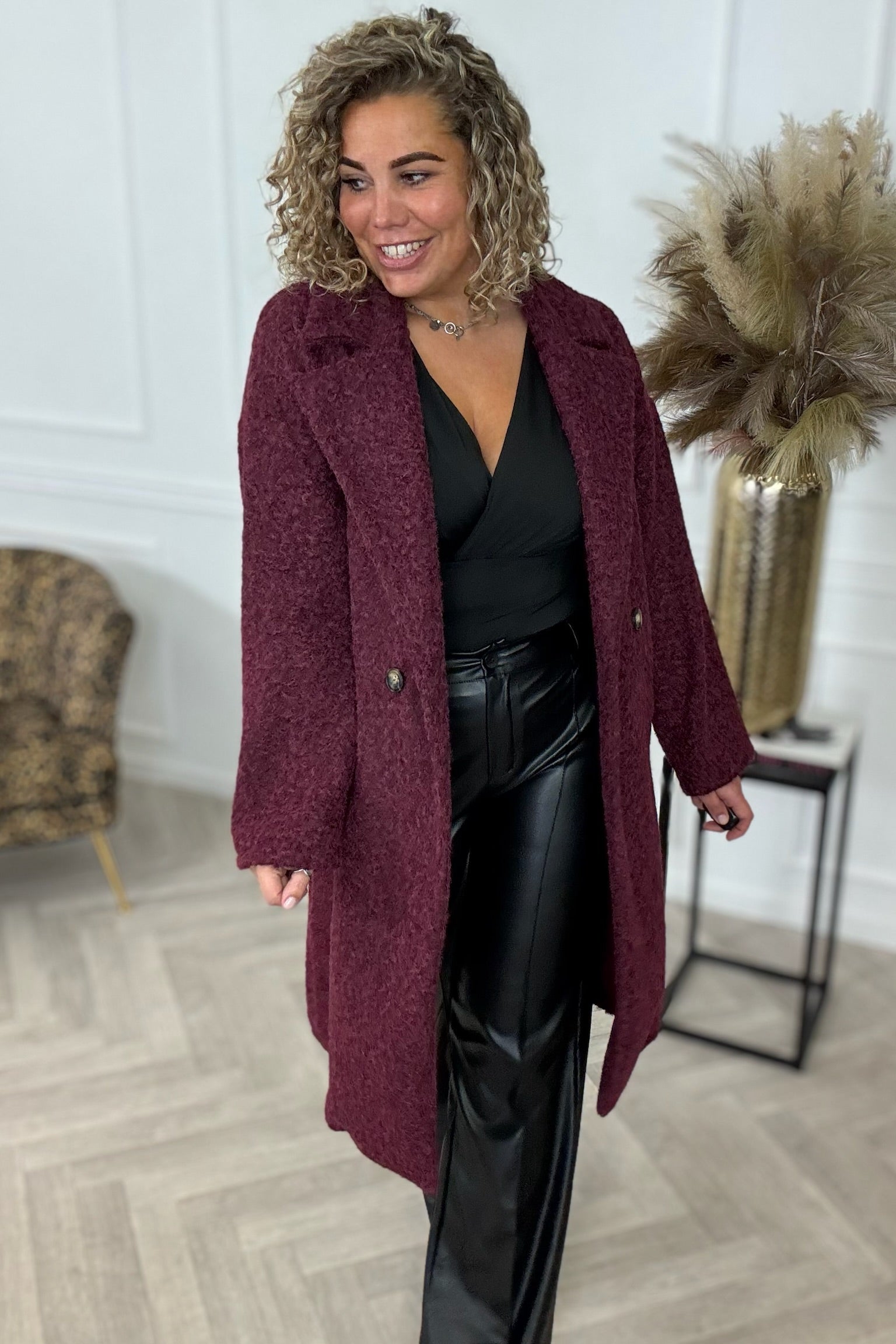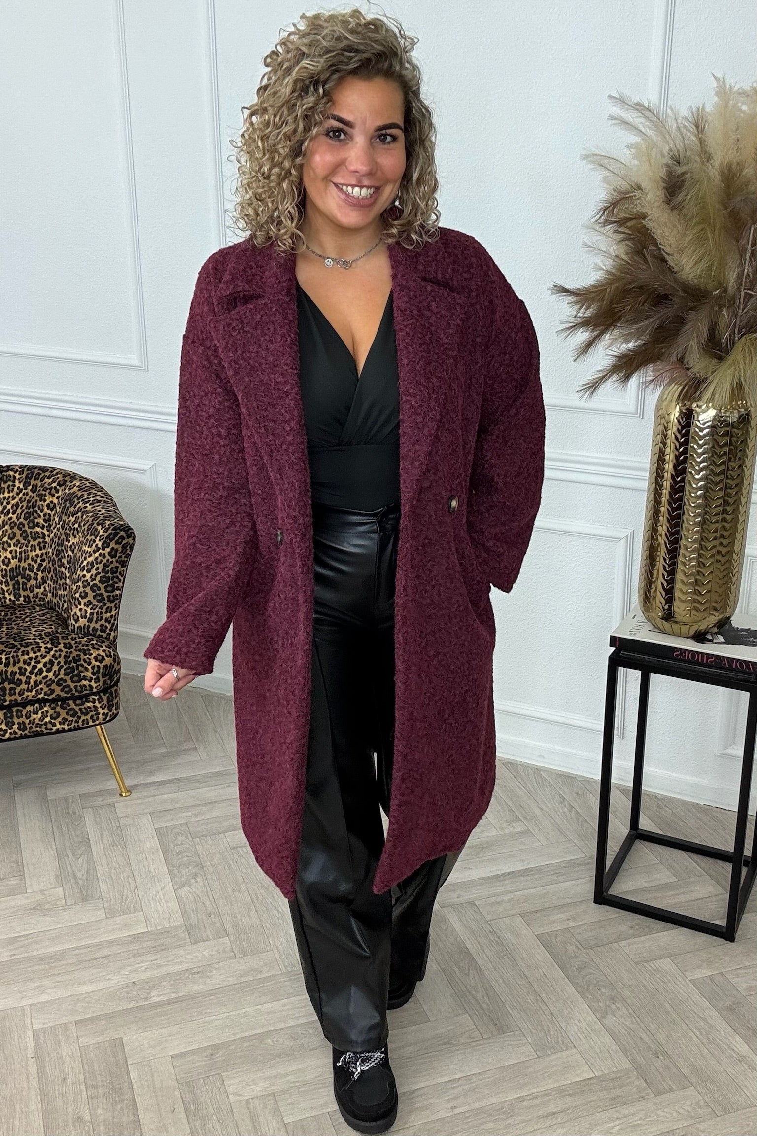 Wat een prachtige jassen van ons eigen label. Deze heerlijke lange coat is de ideale herfstjas, passend in onze Classy Collectie! Shop hem samen met een bijpassende pantalon in bordeaux!