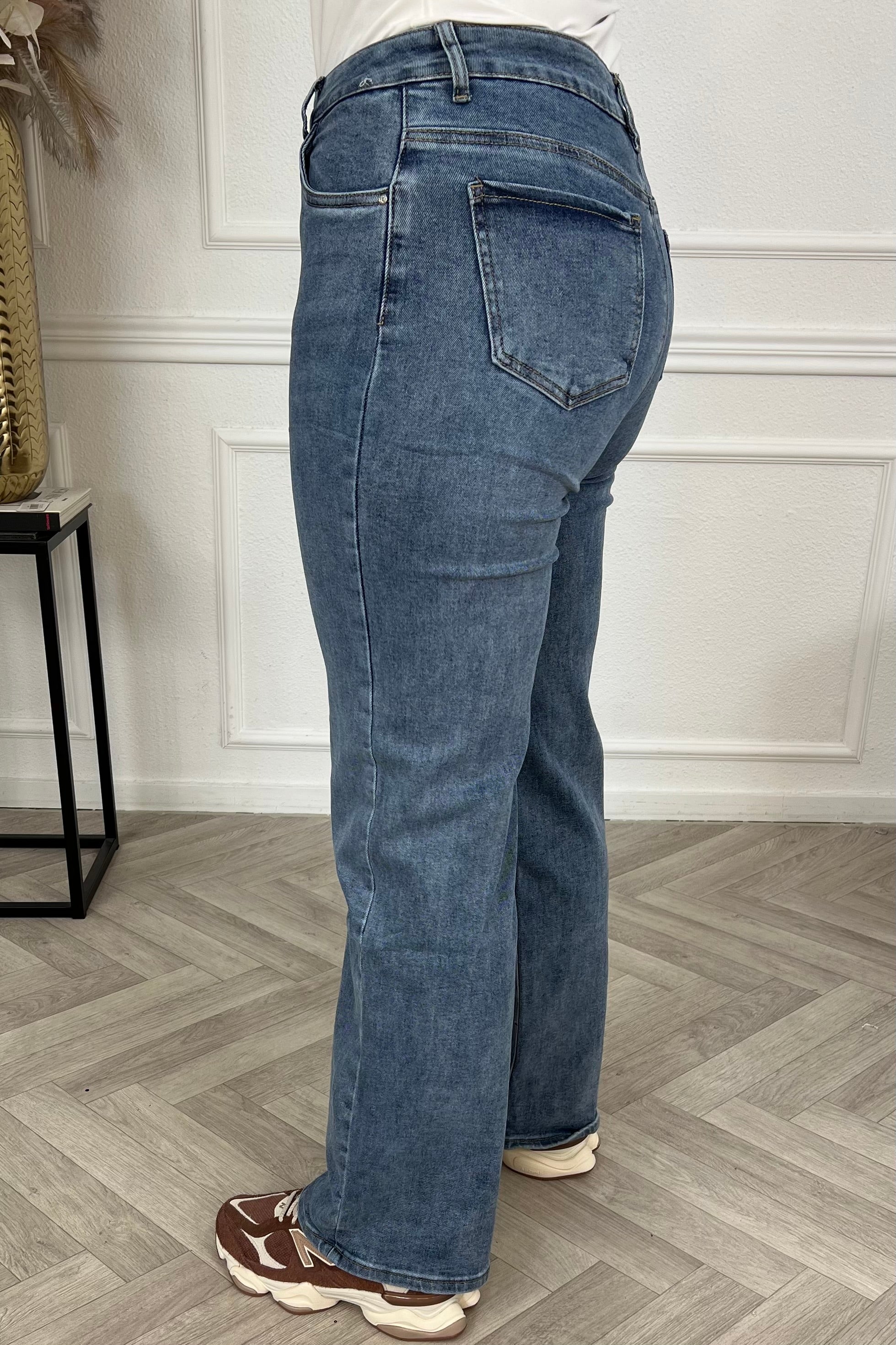 Vul je denim garderobe aan met een van onze wide leg jeans. Shop hem in Dark Blue.