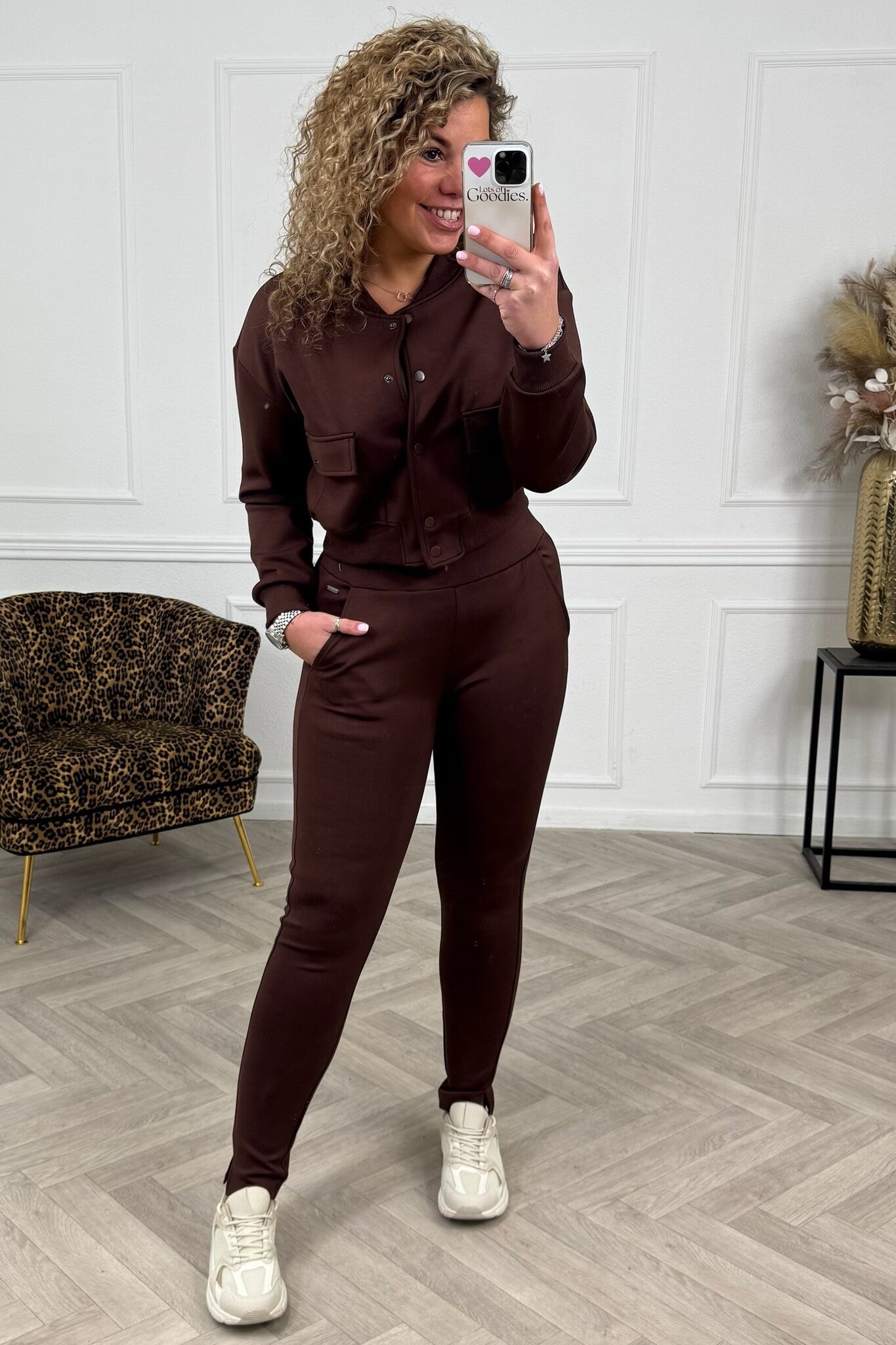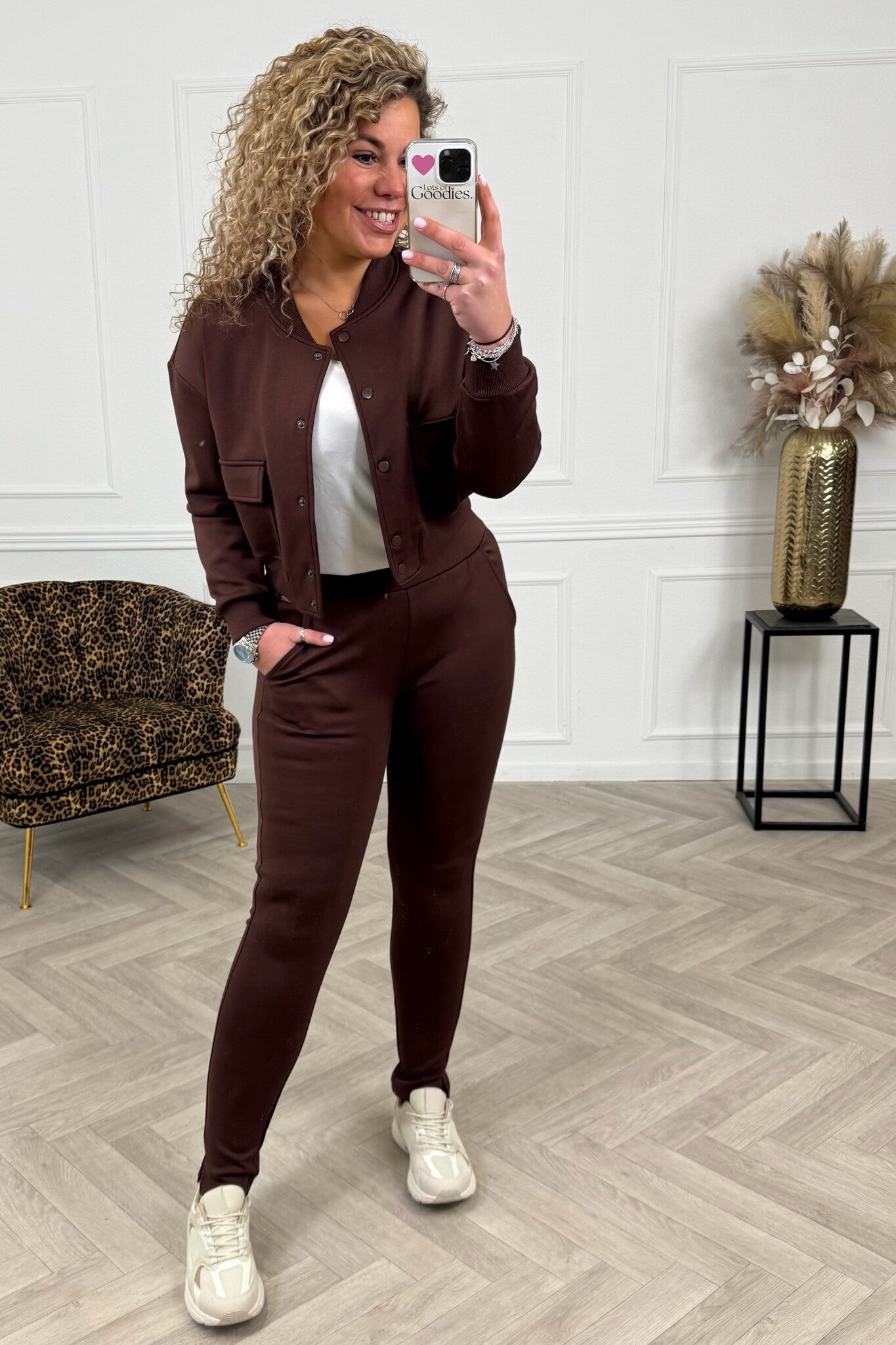 Deze set met jasje en broek, zit niet alleen heerlijk maar is ook super stylish! Shop jouw maat nu online in brown!