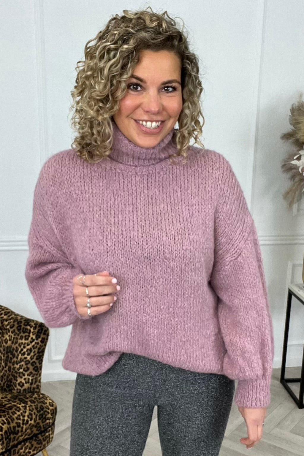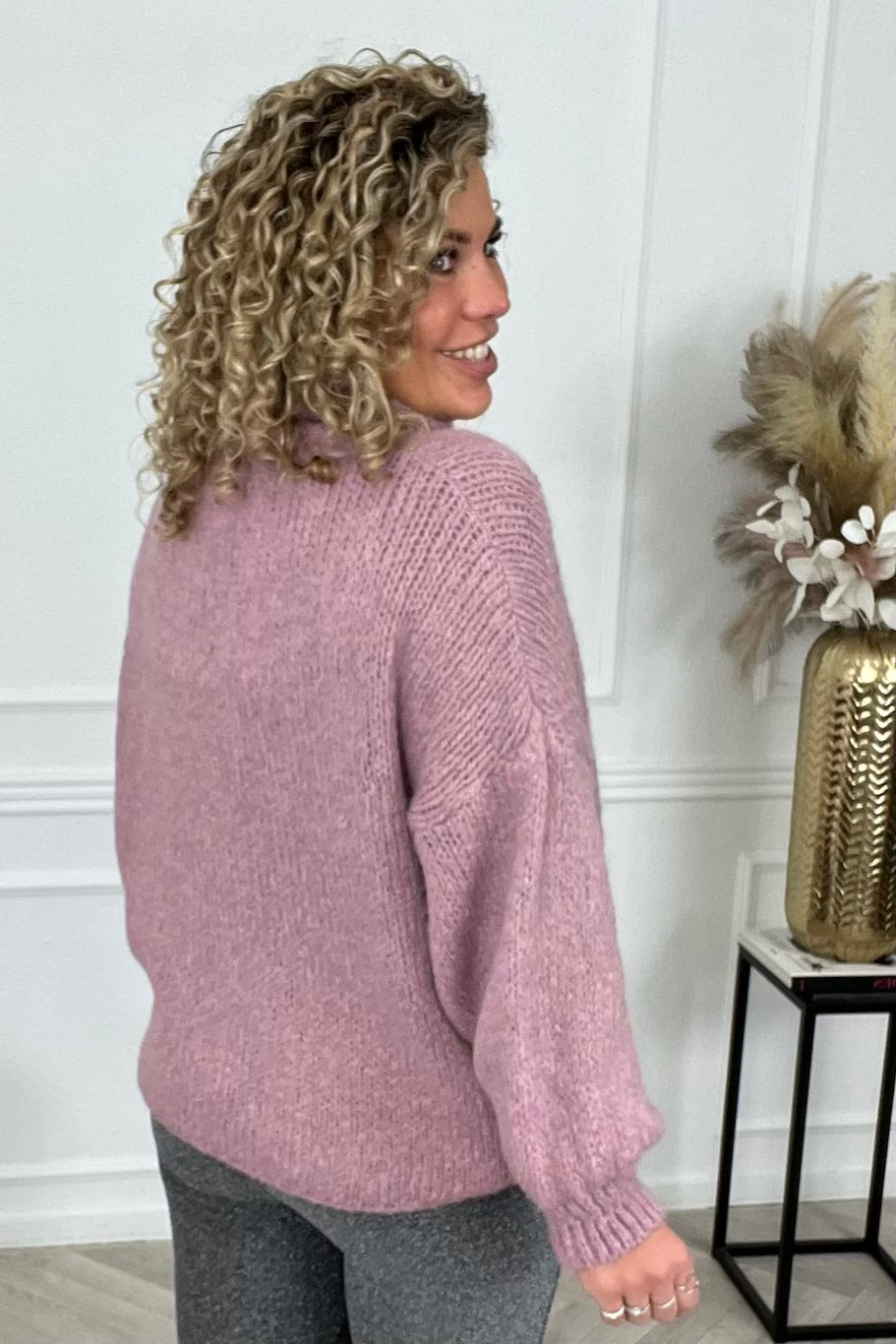 Deze heerlijke sweater kriebelt niet en heeft wel een fijne hoge coll! Shop deze warme trui nu snel in het mauve!