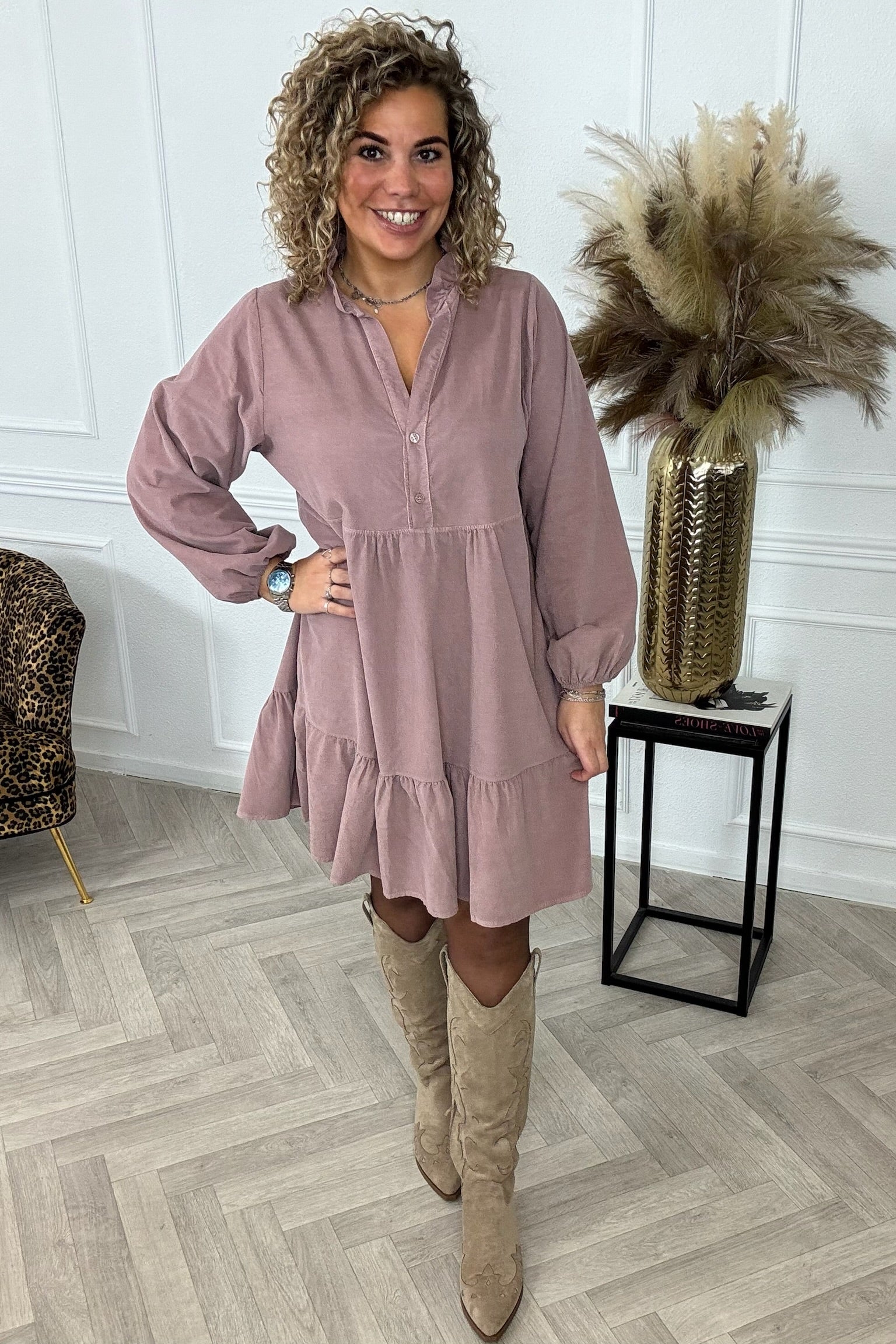 Deze prachtige corduroy A-line dress is gemaakt van 100% katoen! Wij zijn gek op die fijne ribstof! Shop hem in old pink!