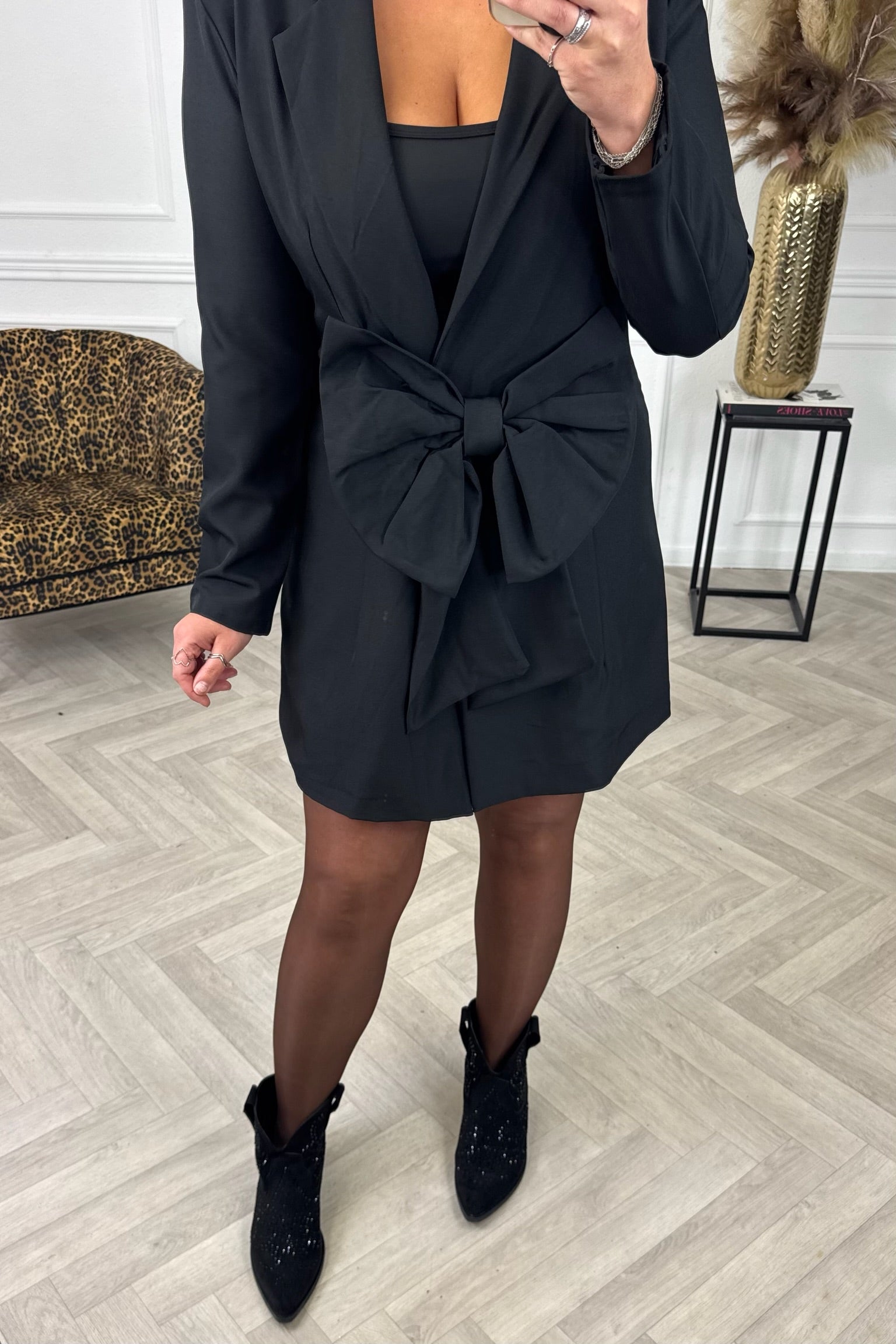 The iconic bow dress is BACK!!! Een prachtige jurk met een te gekke strik aan de voorkant! Een echte eyecatcher voor kerst, een feestje of gewoon zomaar. Shop the bow blazer dress nu snel in black!