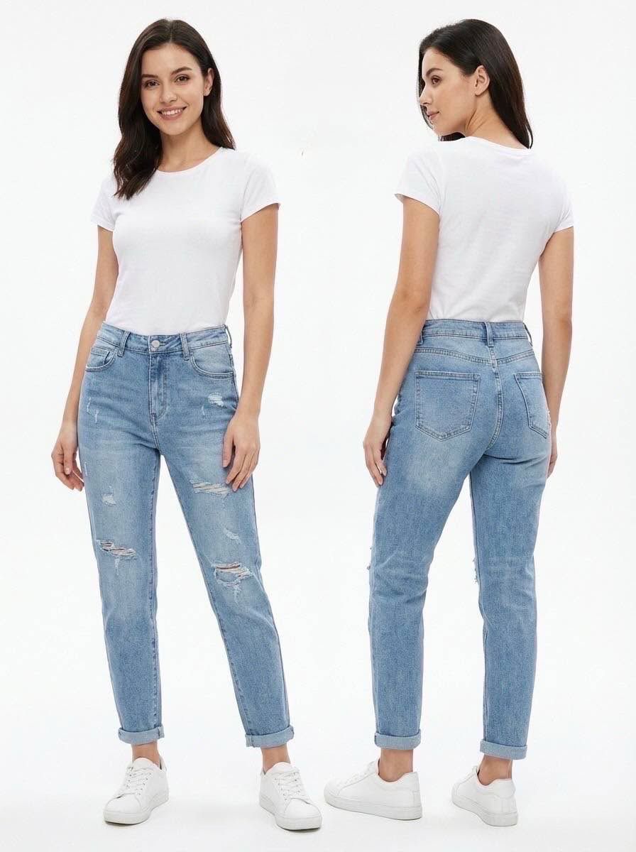 Ripped Momfit Jeans - Denim Blue