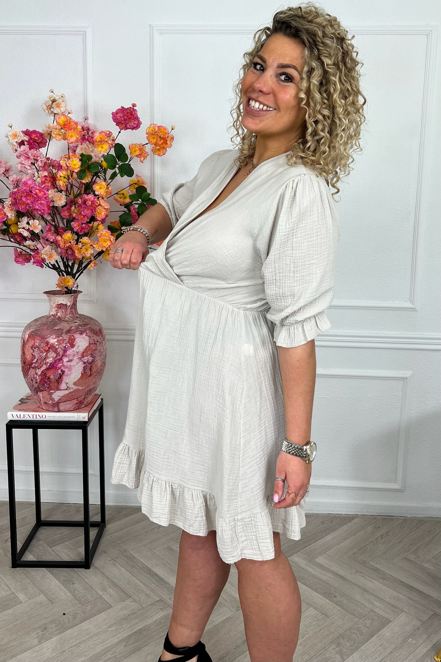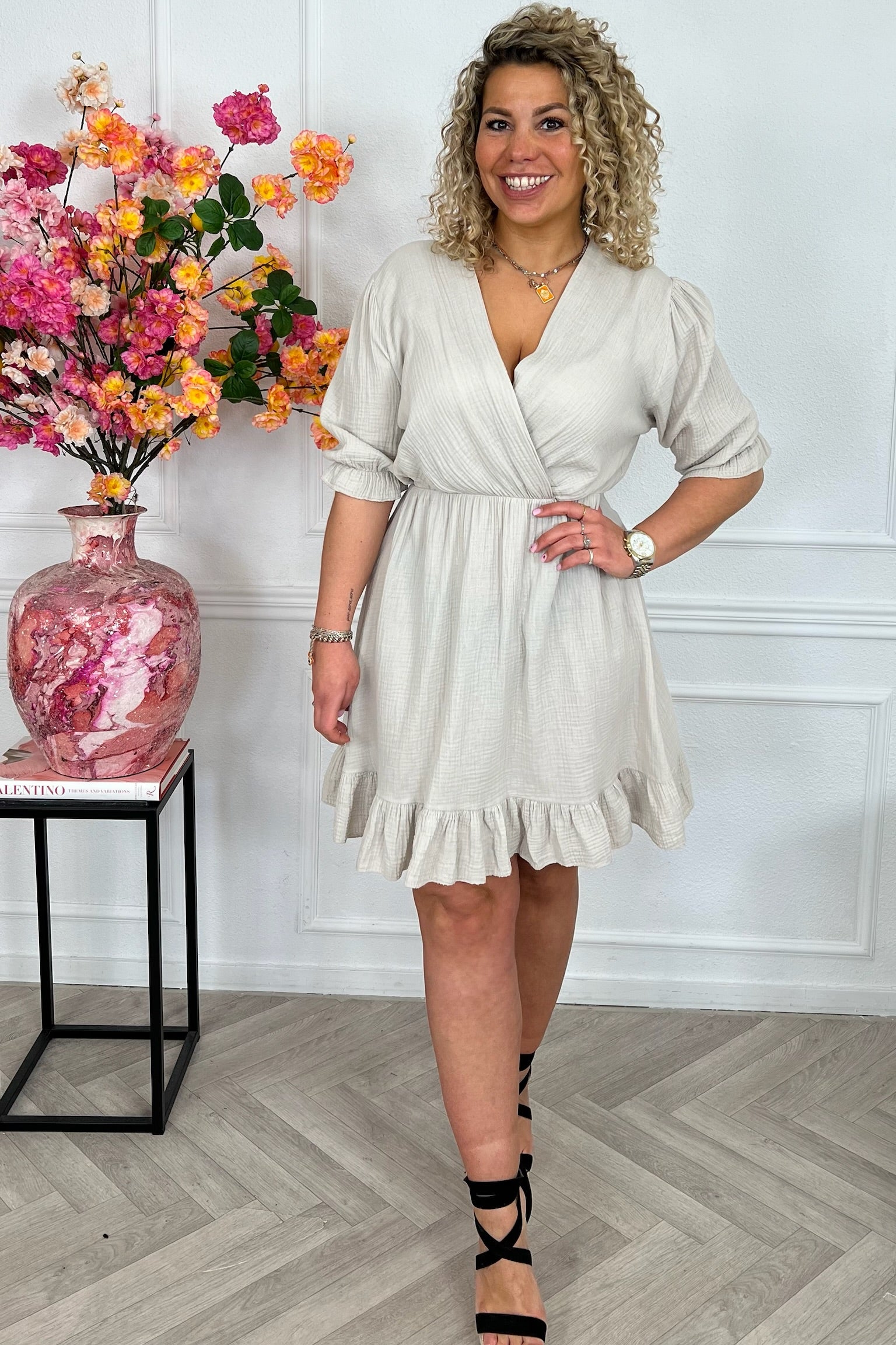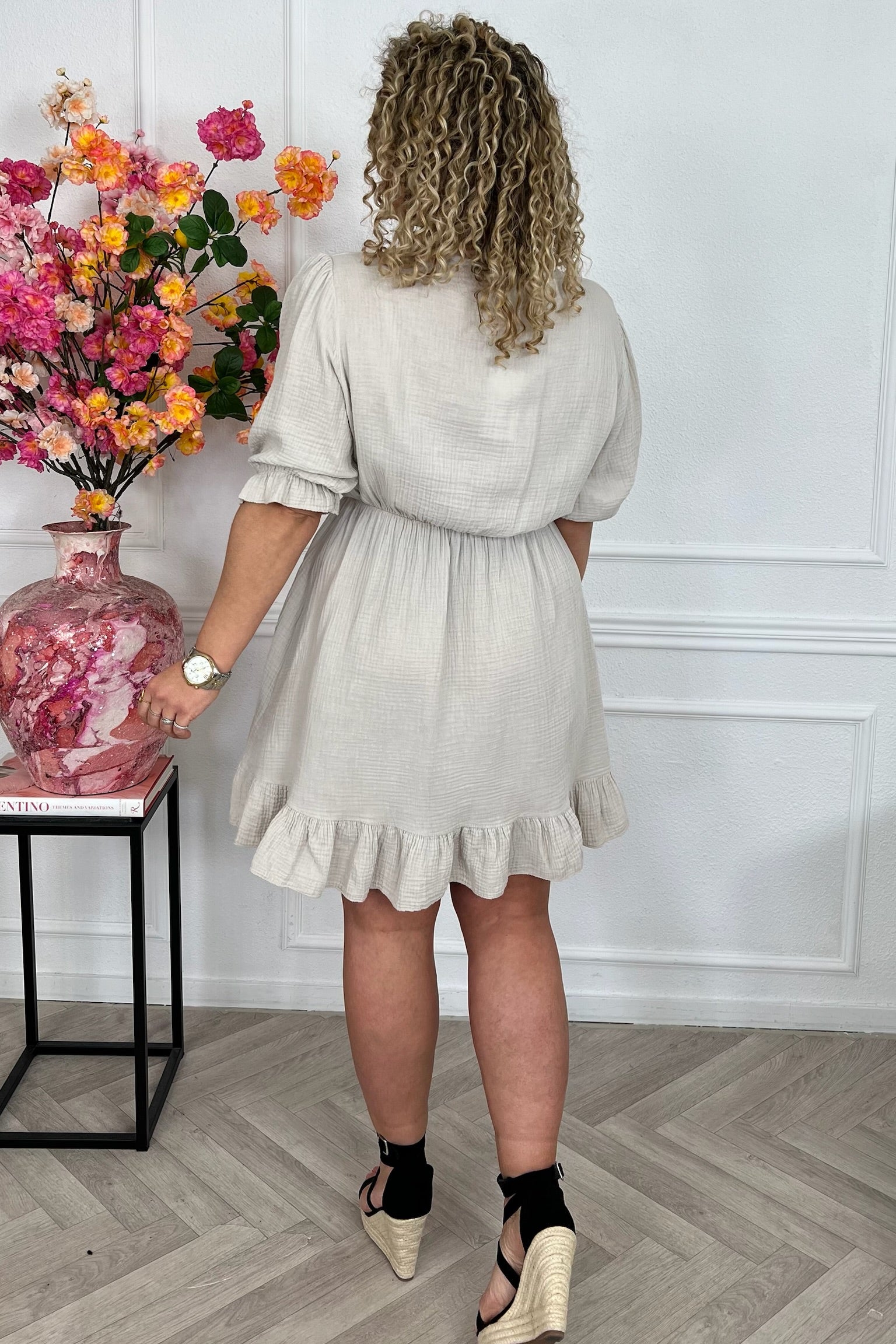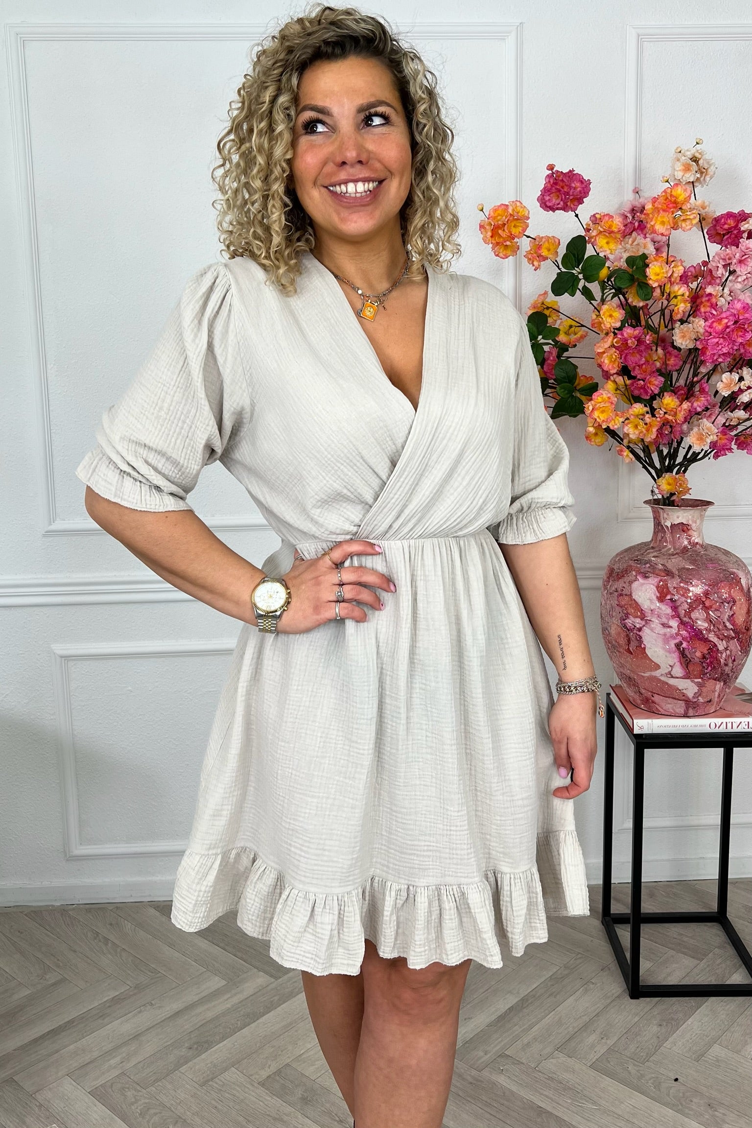 Yess! Mousseline is weer helemaal hot! Shop deze prachtige short dress nu in beige!