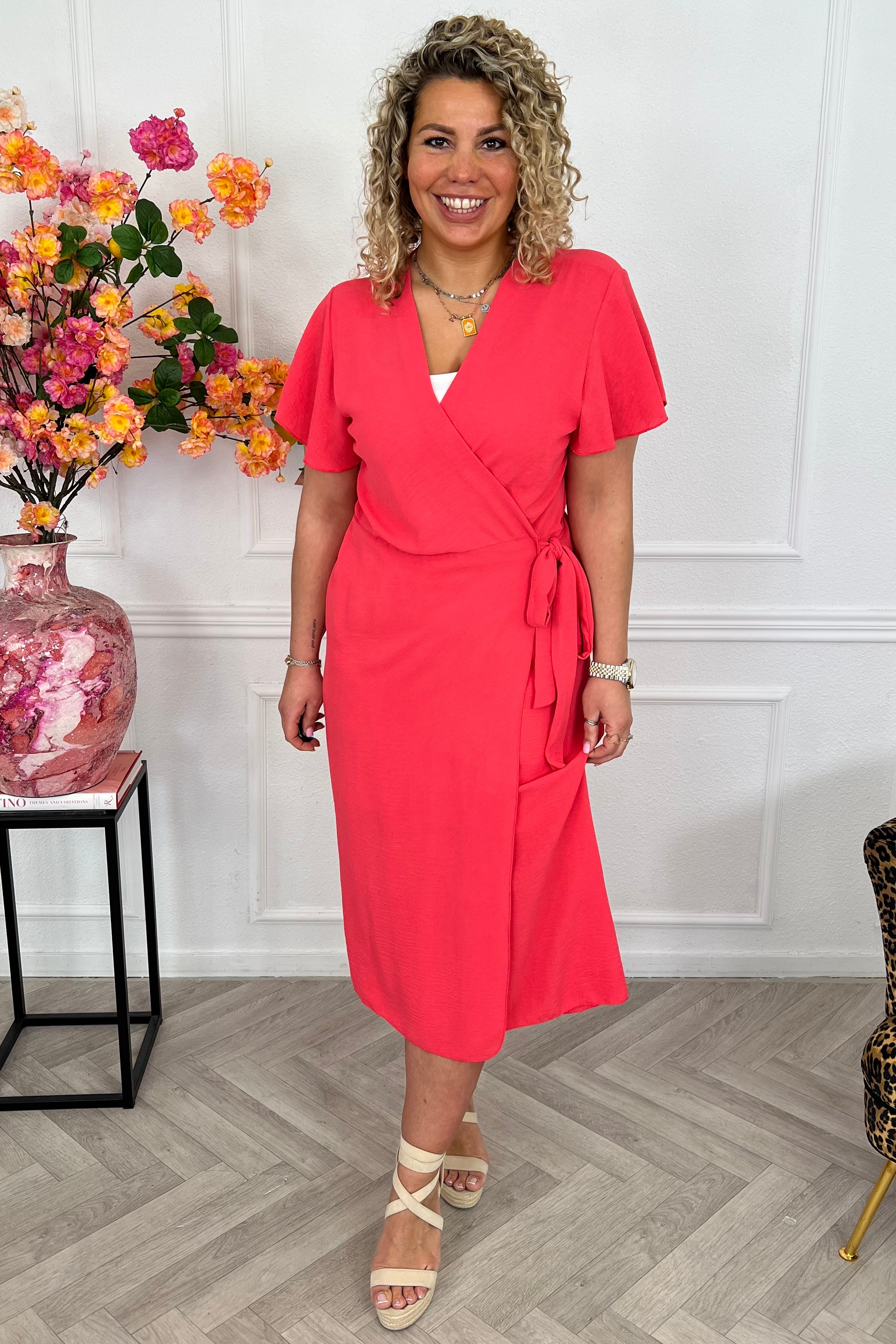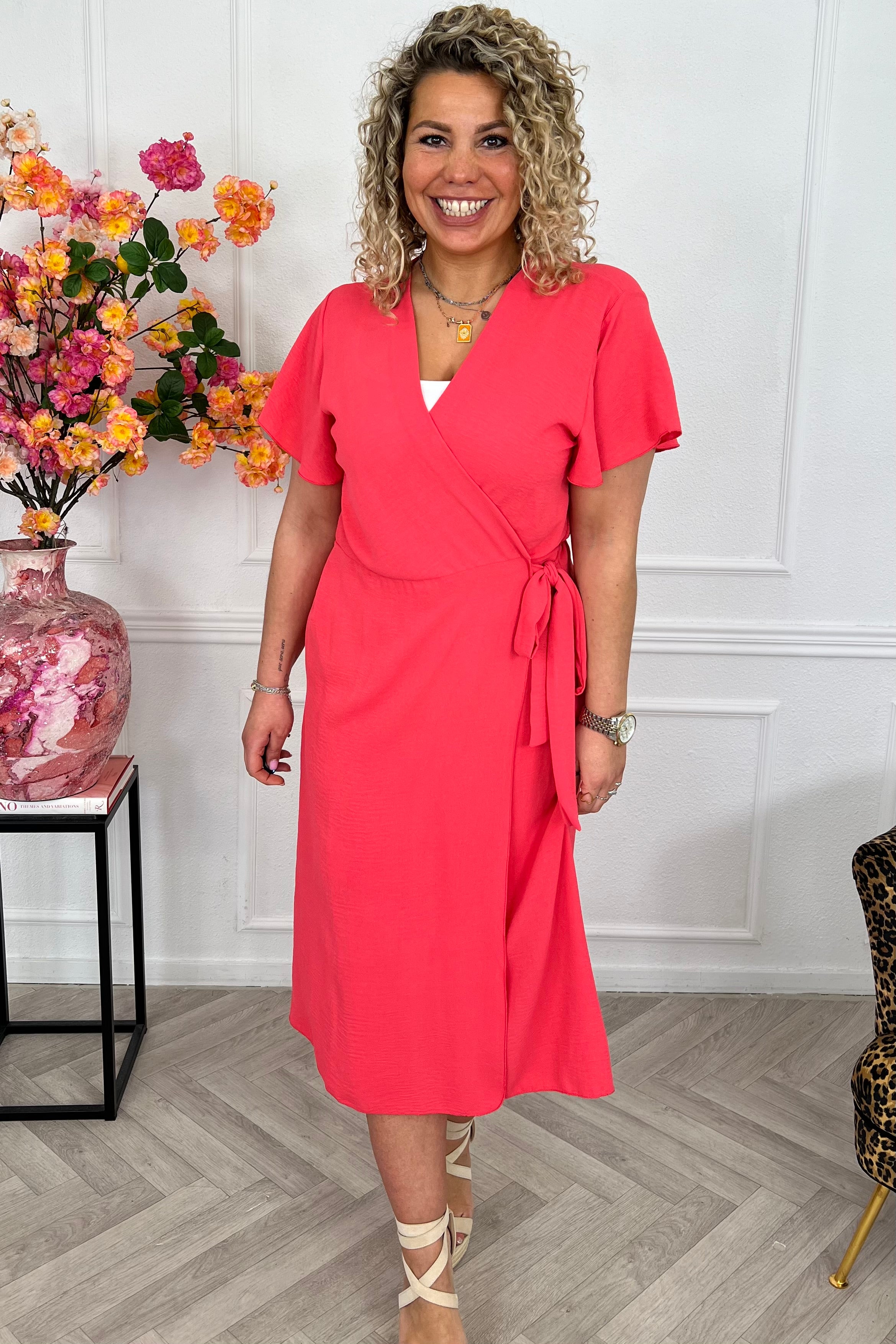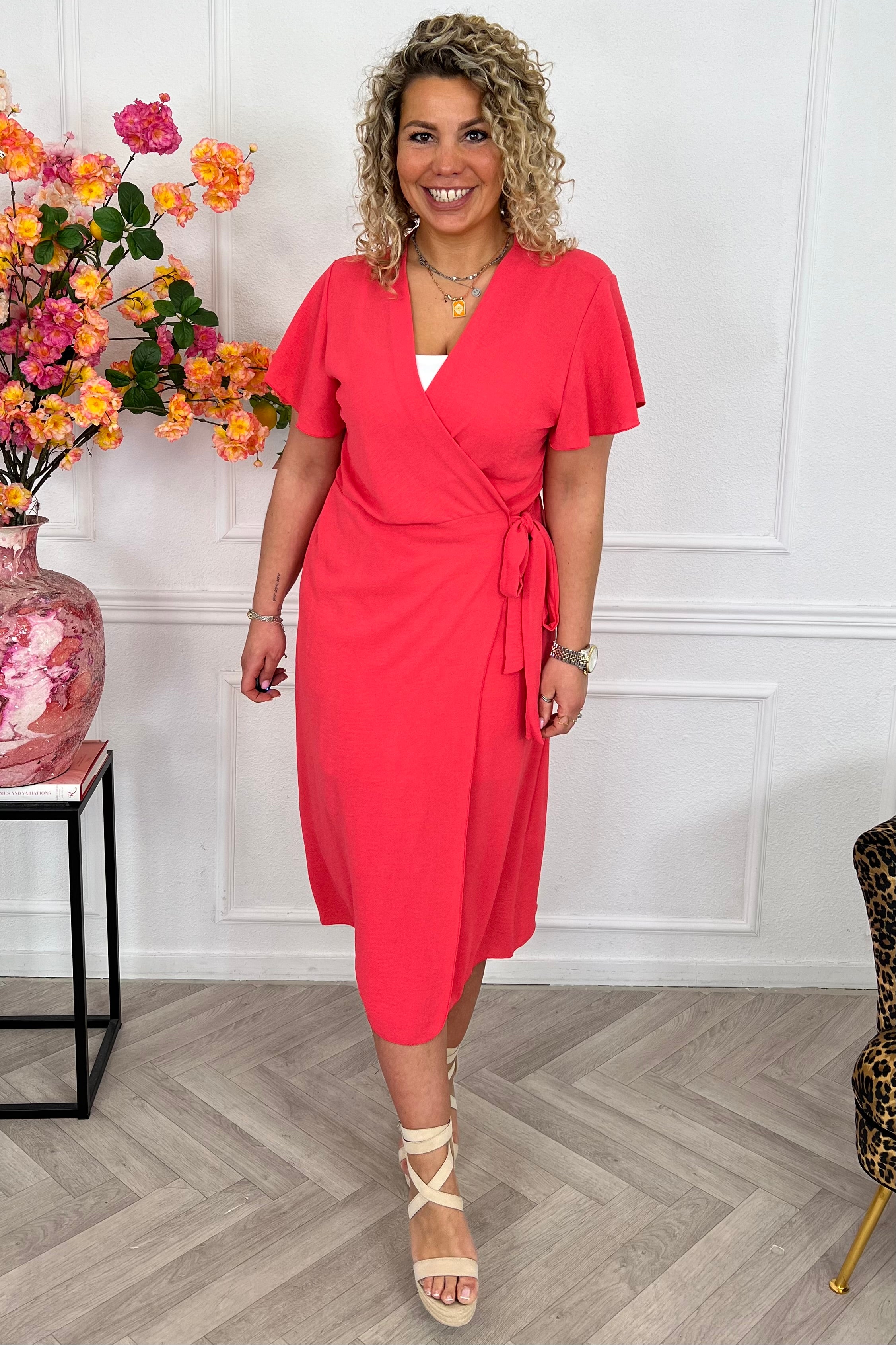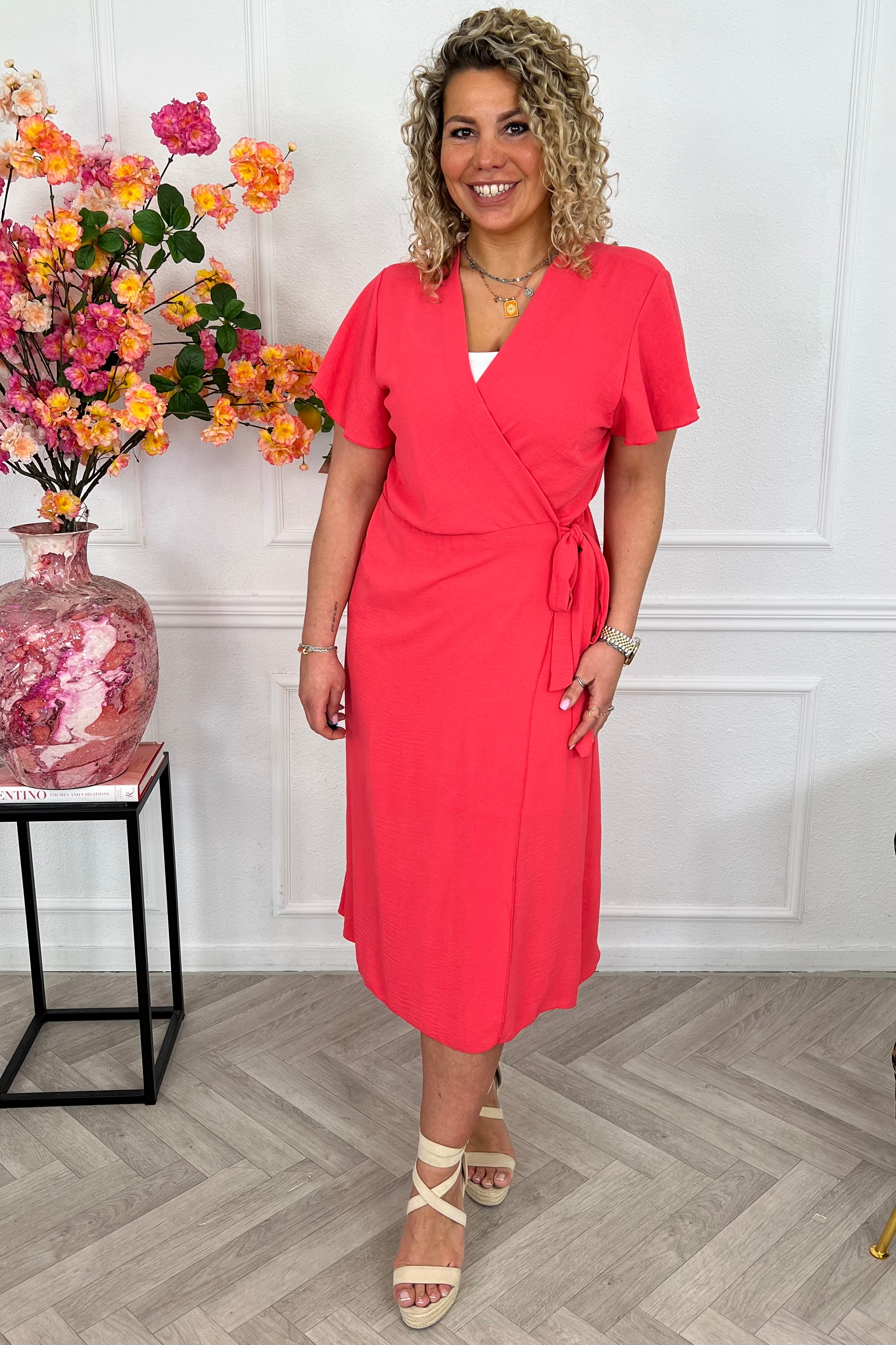 Deze heerlijke maxi wrapdress maakt jouw look compleet. Combineer met boots en the summer is yours! Shop hem in coral!