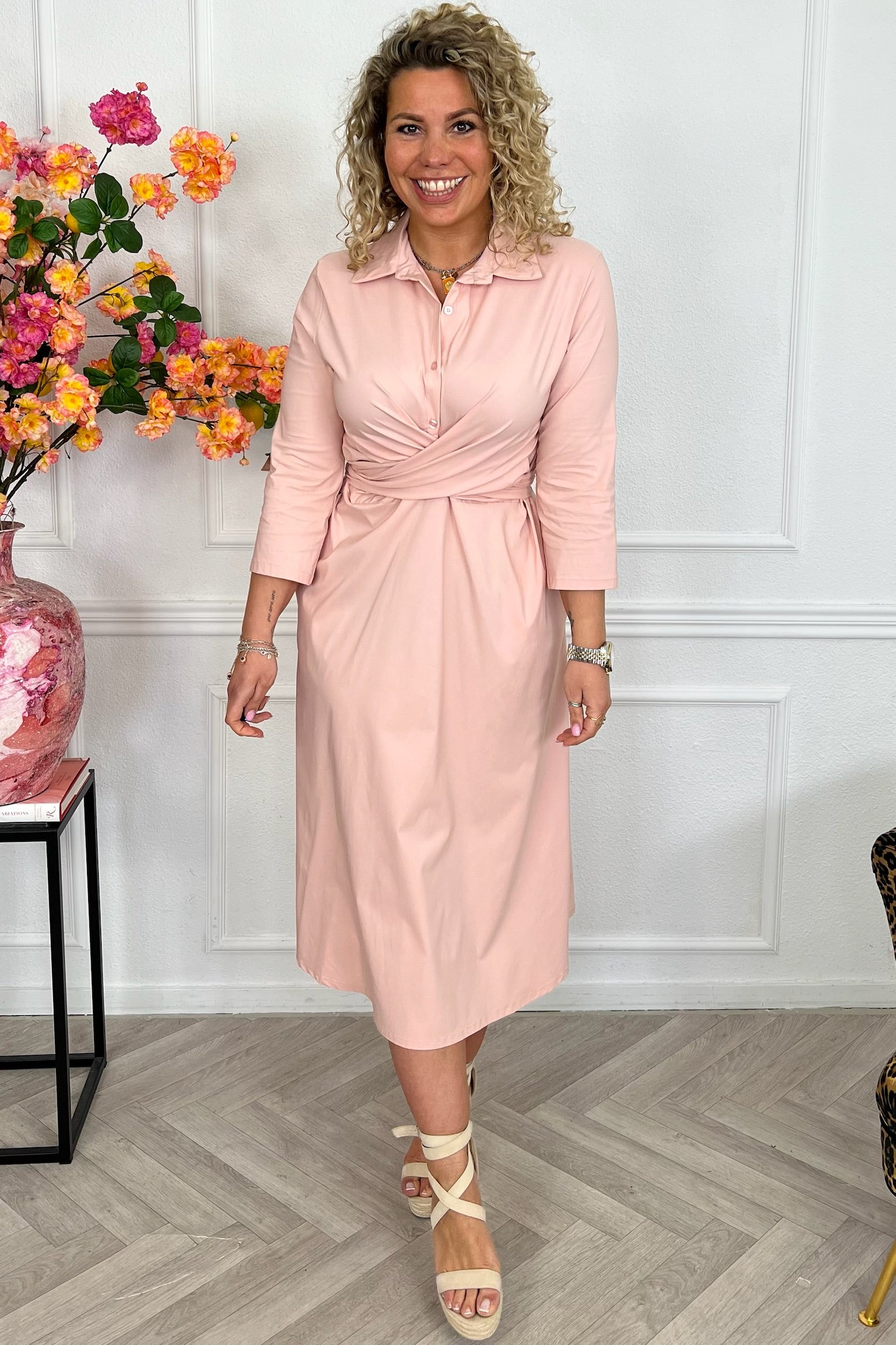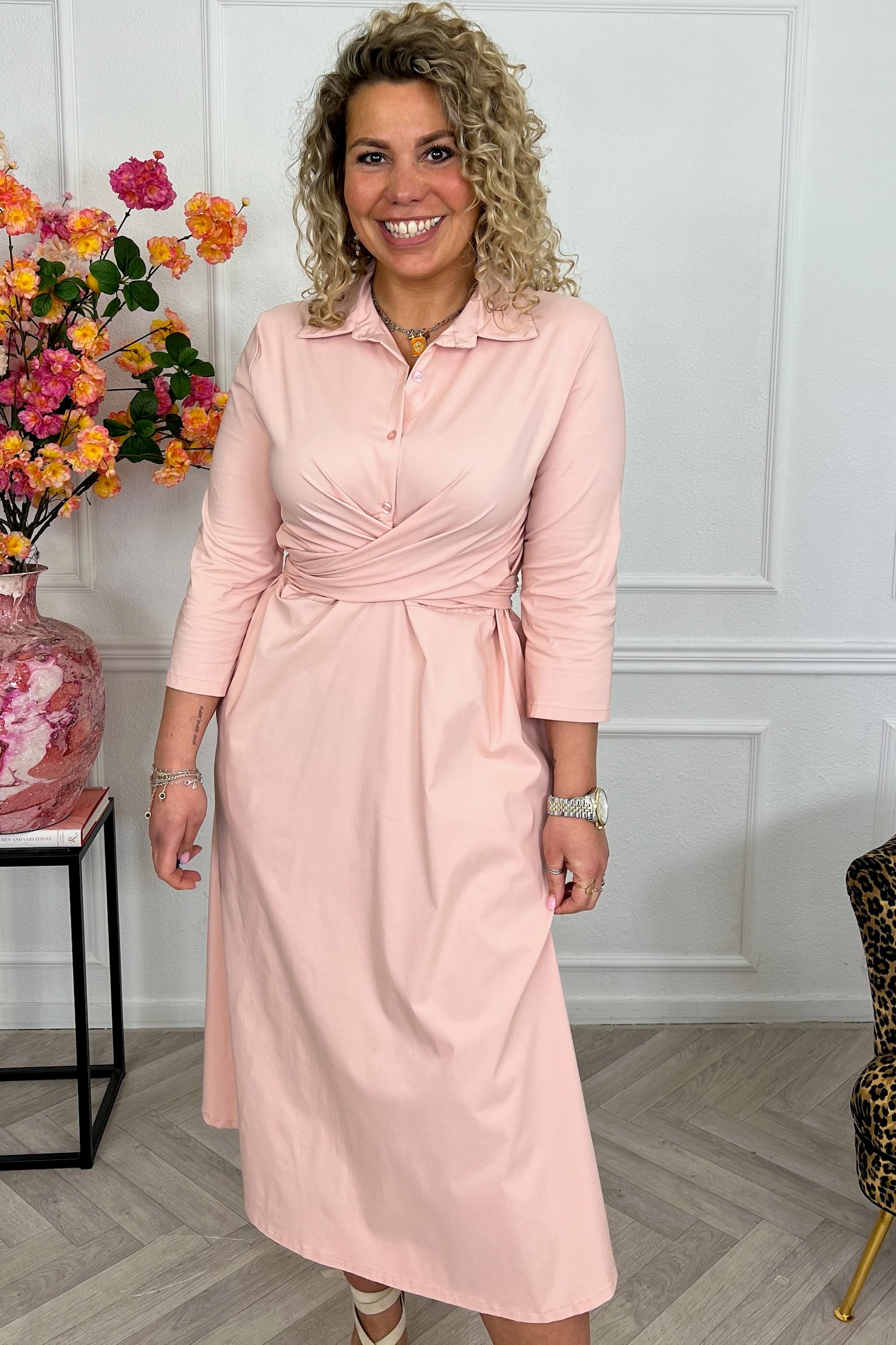 Ben jij ook zo gek op wrap dresses? Wij houden ervan! Shop deze heerlijke dress in travelmateriaal nu in het lang online! Shop hem in pink!
