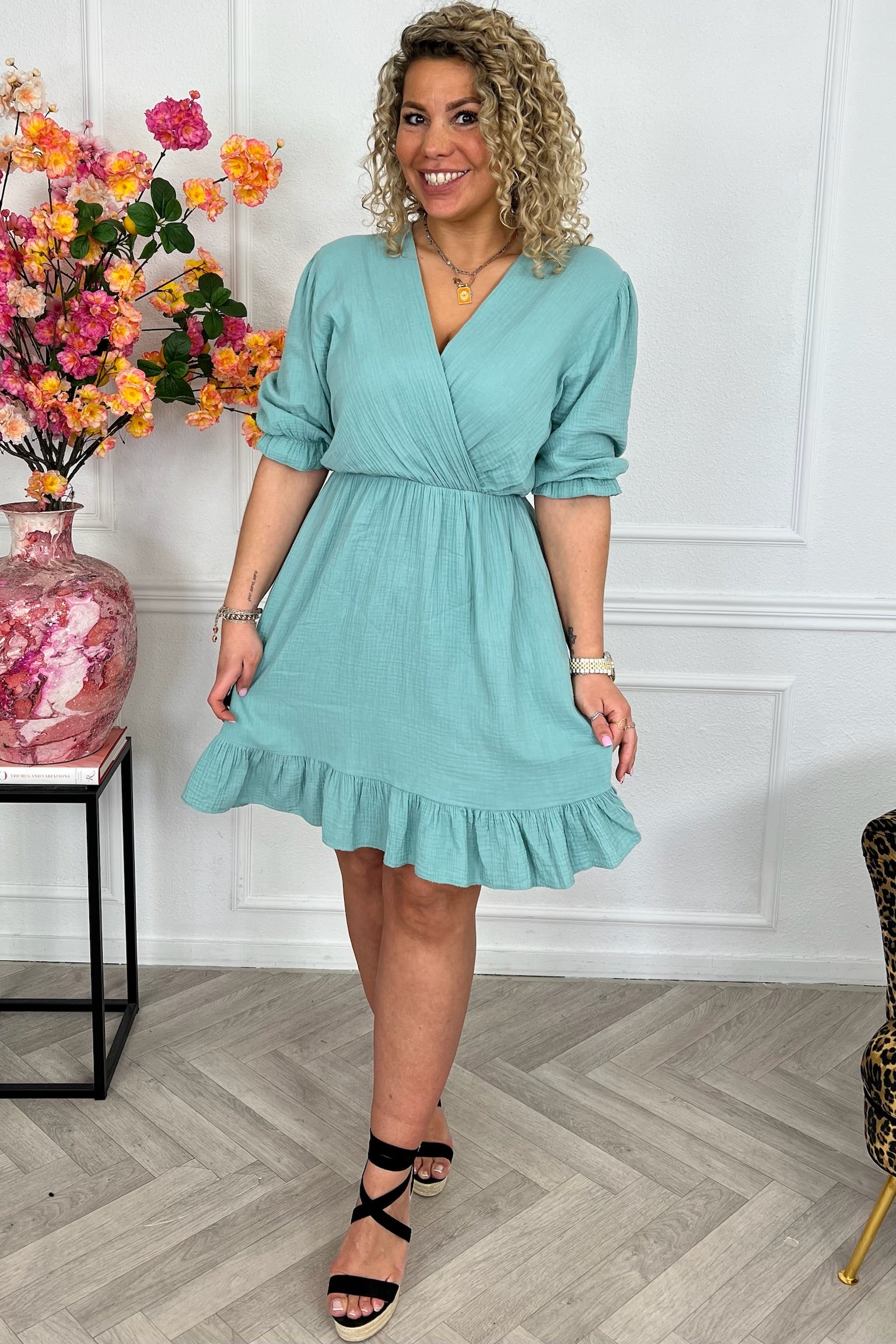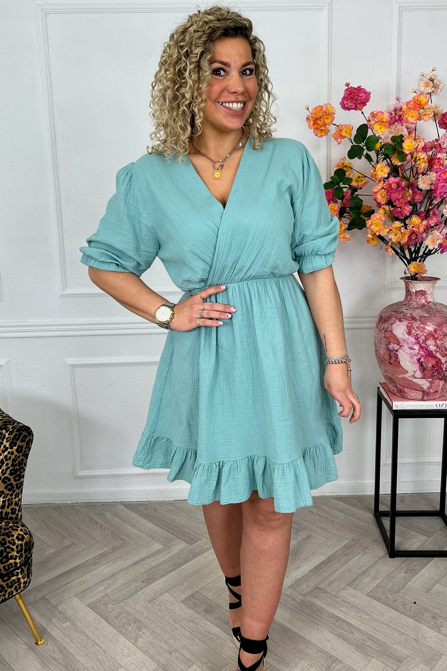 Florence Mousseline Short Dress - Light Green