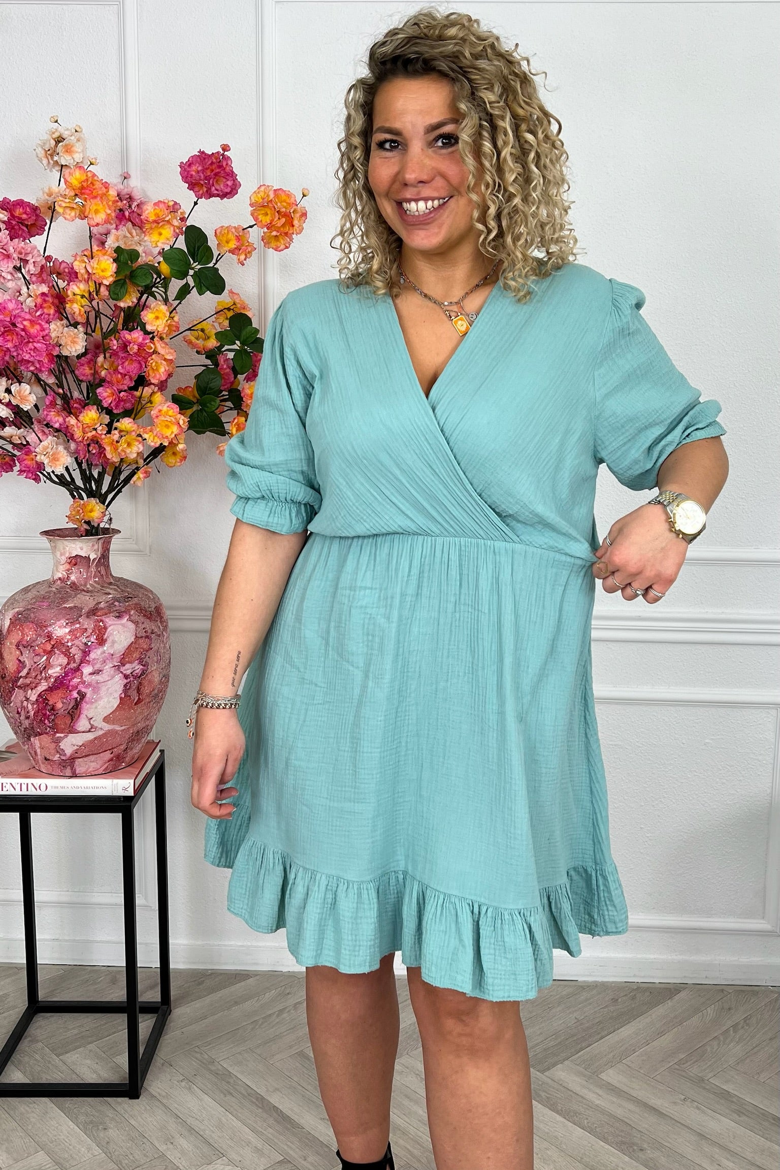 Curvy Short Knotted Forest Dress - Turquoise