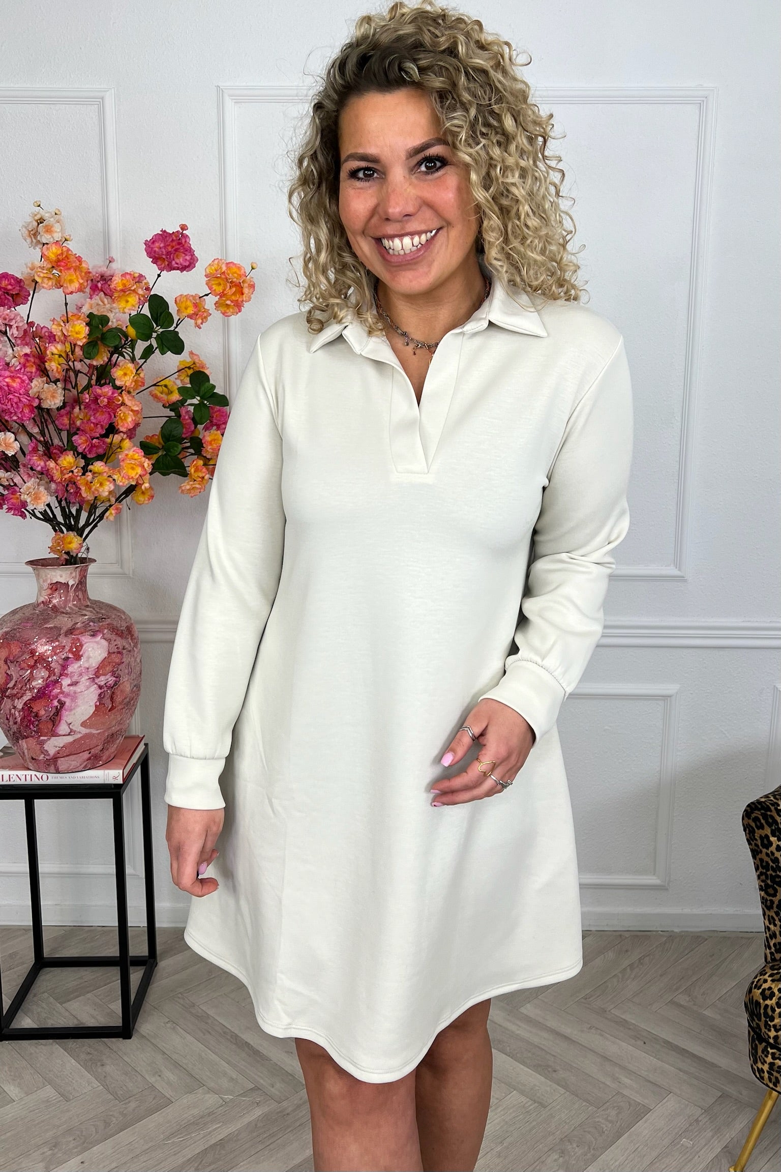 Scuba Sweater Dress - Beige