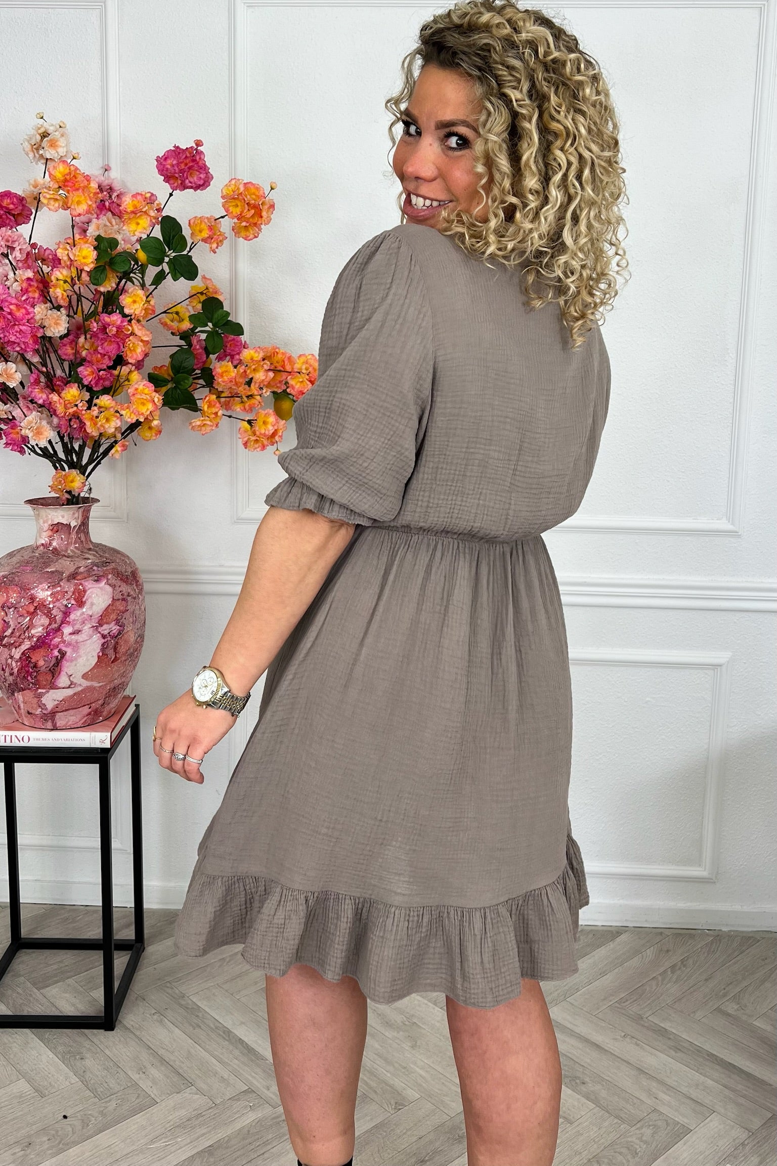 Florence Mousseline Short Dress - Taupe
