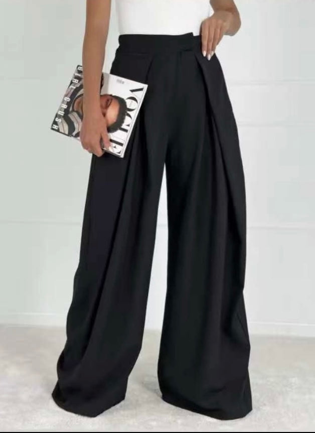 Deze Balloon Fit Pants met halfhoge taille en fijne wijde pijpen shop je nu met elastieke band en knoop. Shop hem in black!