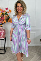 Onze signature dress is terug! Shop onze short knotted dress online in nieuwe prints! Shop hem in onze linesprint in lila!