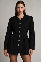Deze blazer dress met zilveren knopen staat nu online. Wees er snel bij! Shop hem nu in black!