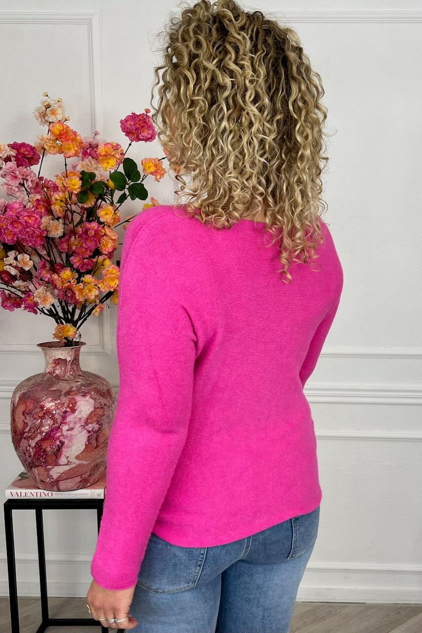 De perfecte sweater met lange mouwen, verkrijgbaar in leuke kleurtjes en ook nog eens met een V hals! Shop hem nu in fuchsia!