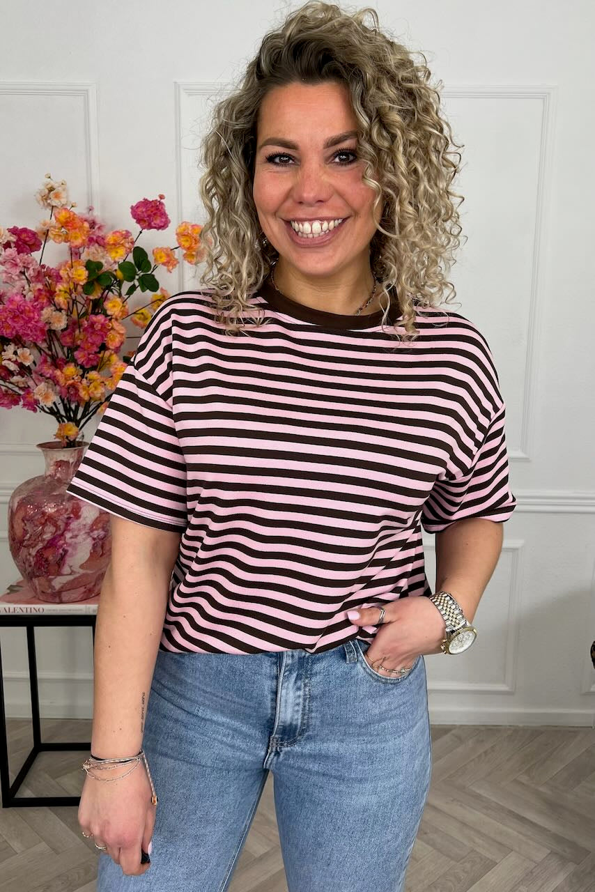 Dit heerlijke t-shirt met trendy streepjes is helemaal spring & summer-proof! Shop hem nu voor een superprijs in black/pink!