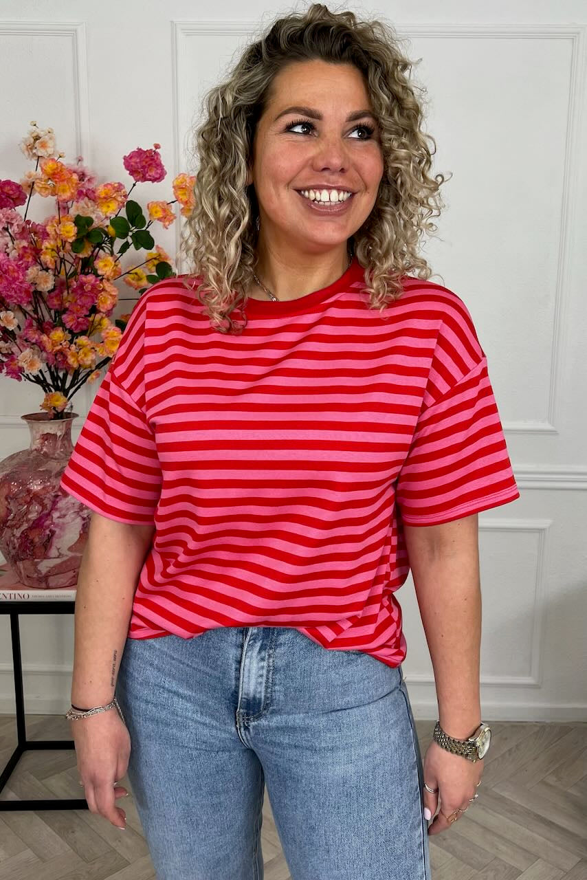 Dit heerlijke t-shirt met trendy streepjes is helemaal spring & summer-proof! Shop hem nu voor een superprijs in fuchsia/pink!