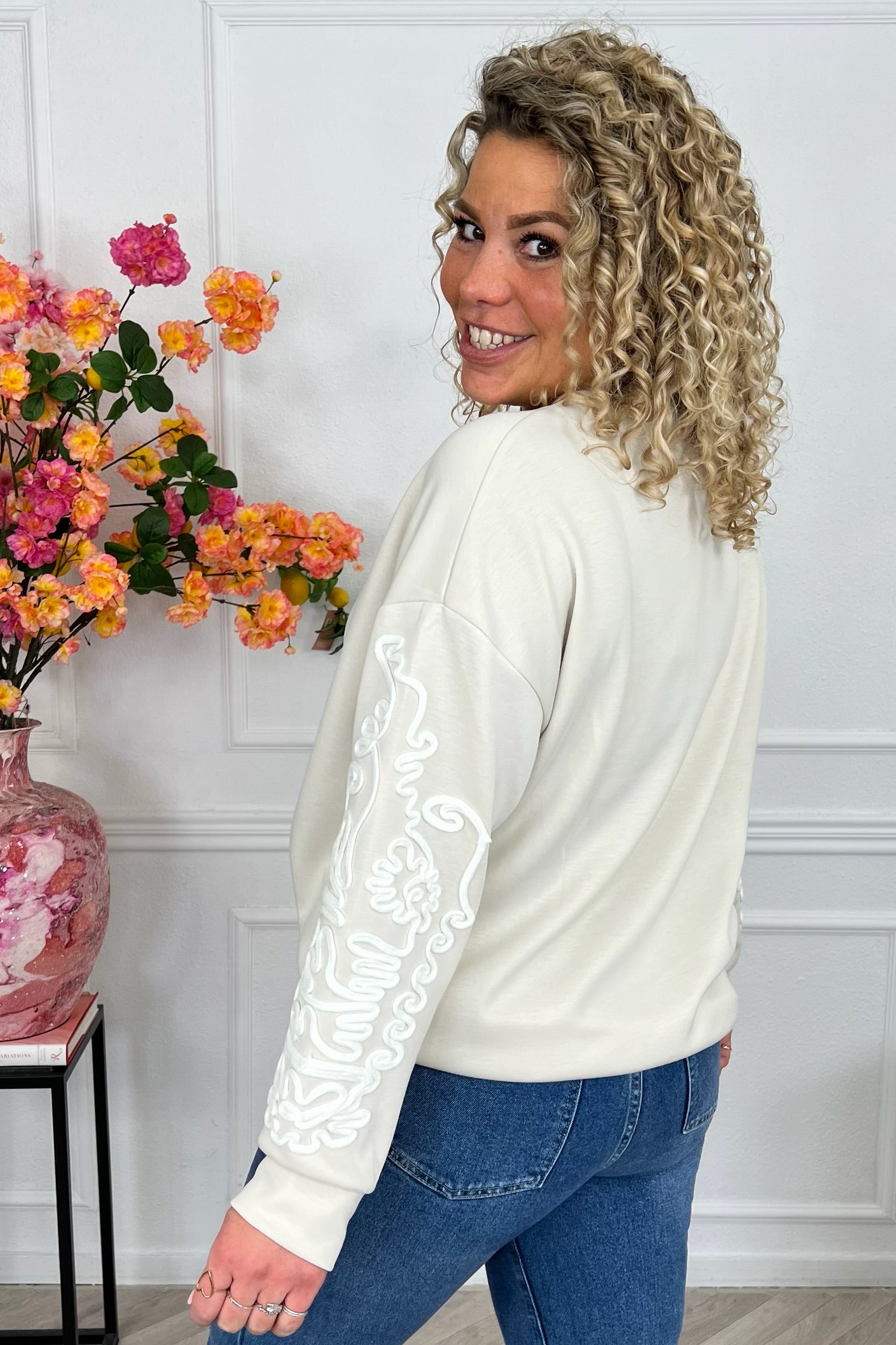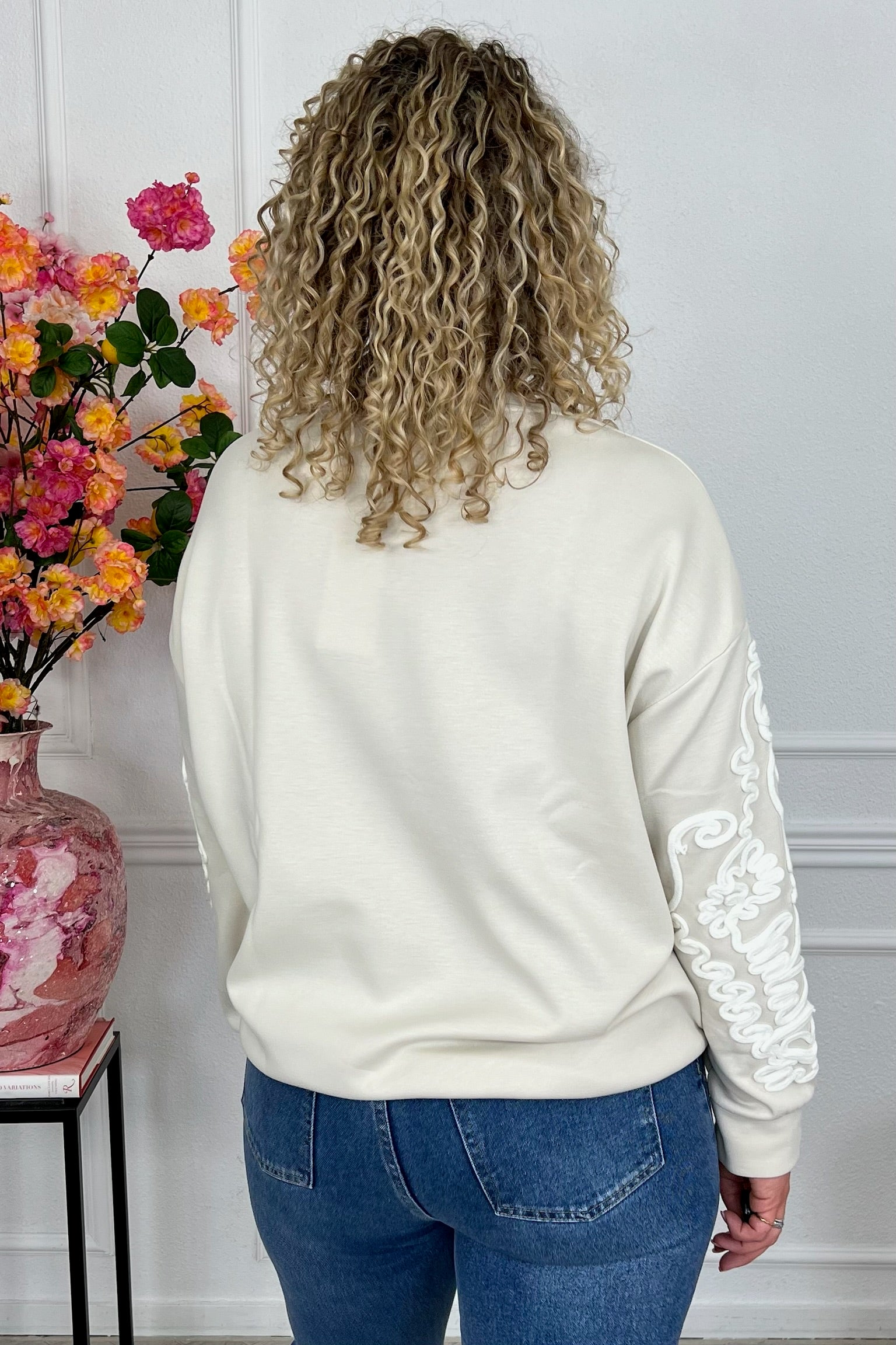 Deze fijne sweater heeft een prachtig detail op de mouwen, shop hem in beige!