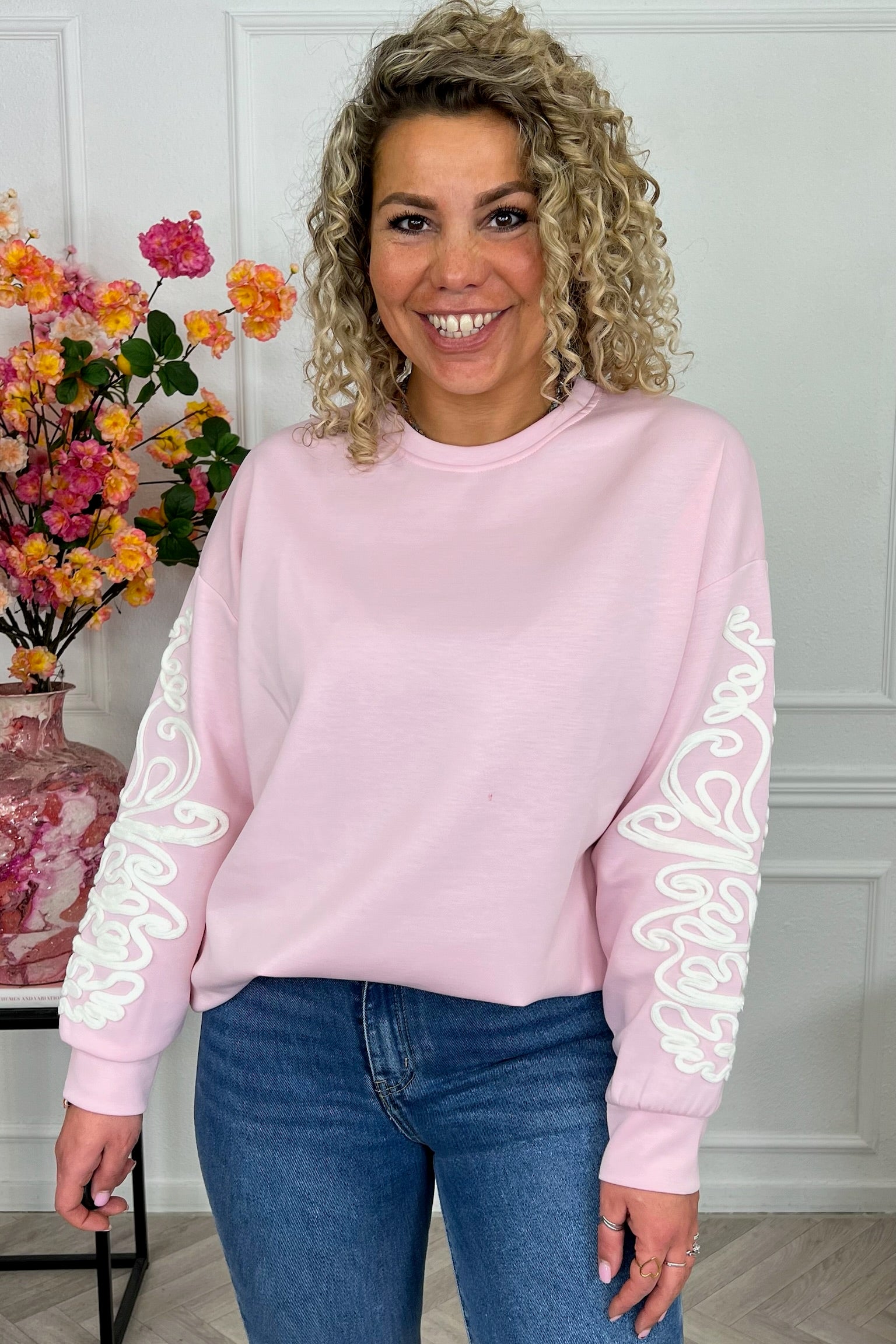 Deze fijne sweater heeft een prachtig detail op de mouwen, shop hem in pink!