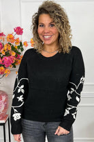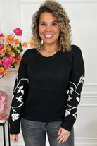 Perfect Floral Sleeve Sweater - Black/Beige