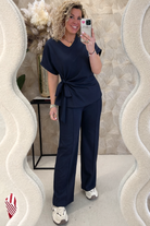 Deze fijne set bestaat uit een comfy pants en een fantastische top met een afslankend effectl! Shop hem in navy!