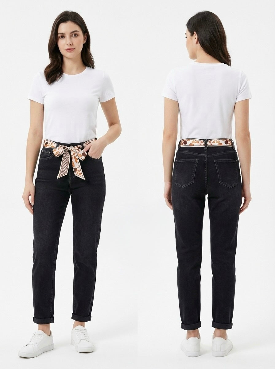 Perfect Momfit Scarf Jeans - Black