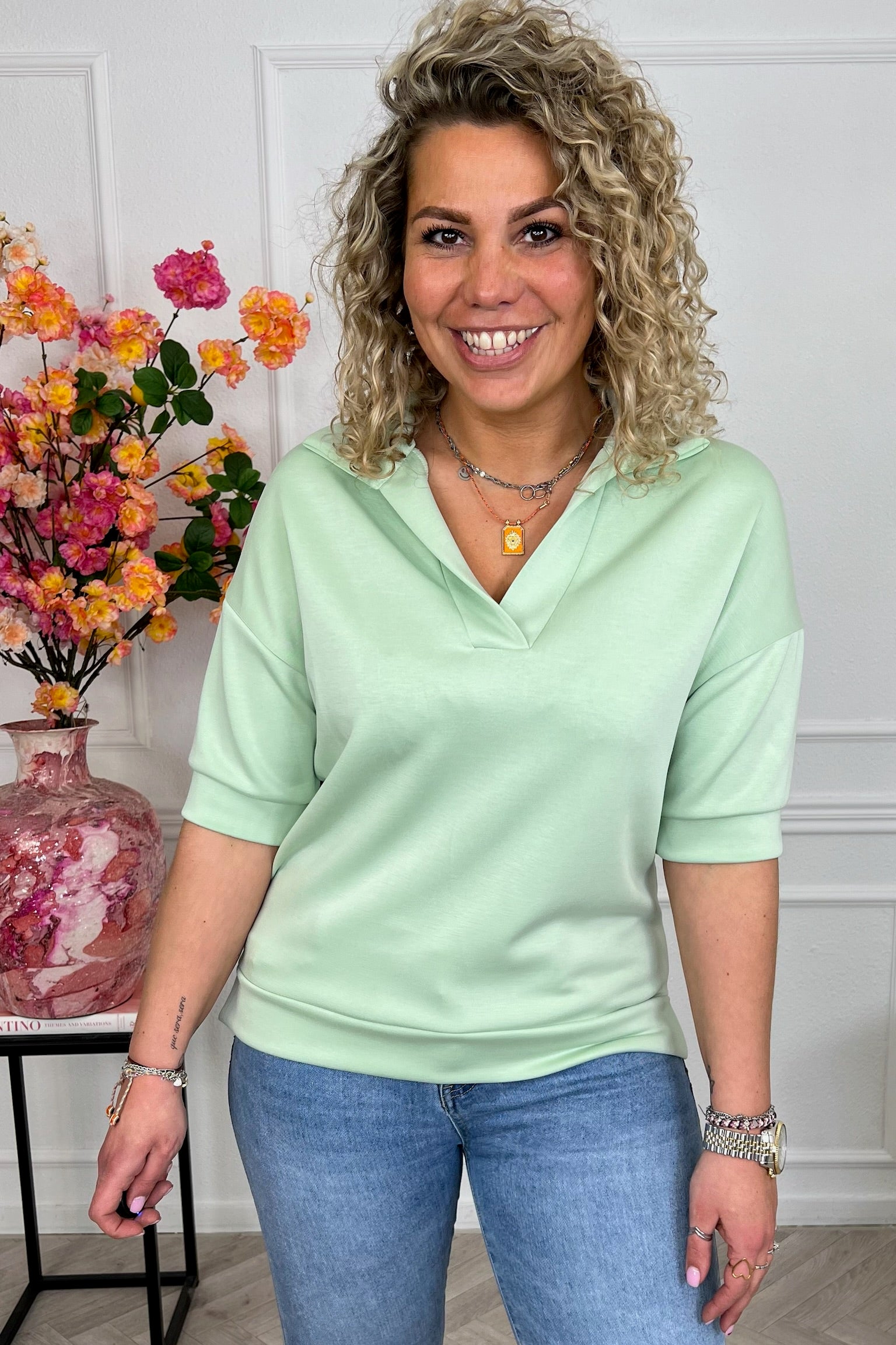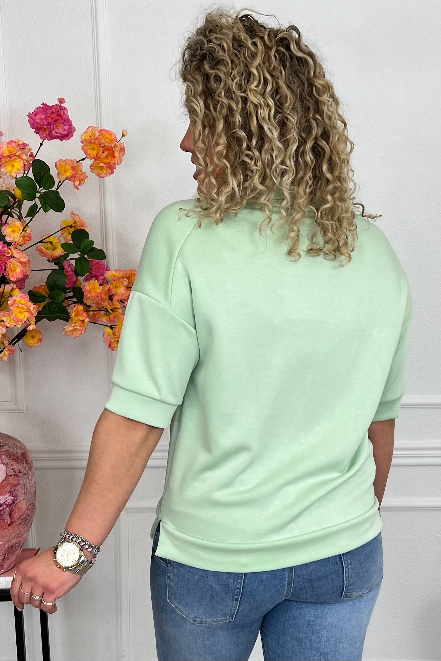 Deze vrolijke shirts zijn gemaakt van scubastof, heerlijk zacht en ideaal om te combineren! Shop hem in pistache!
