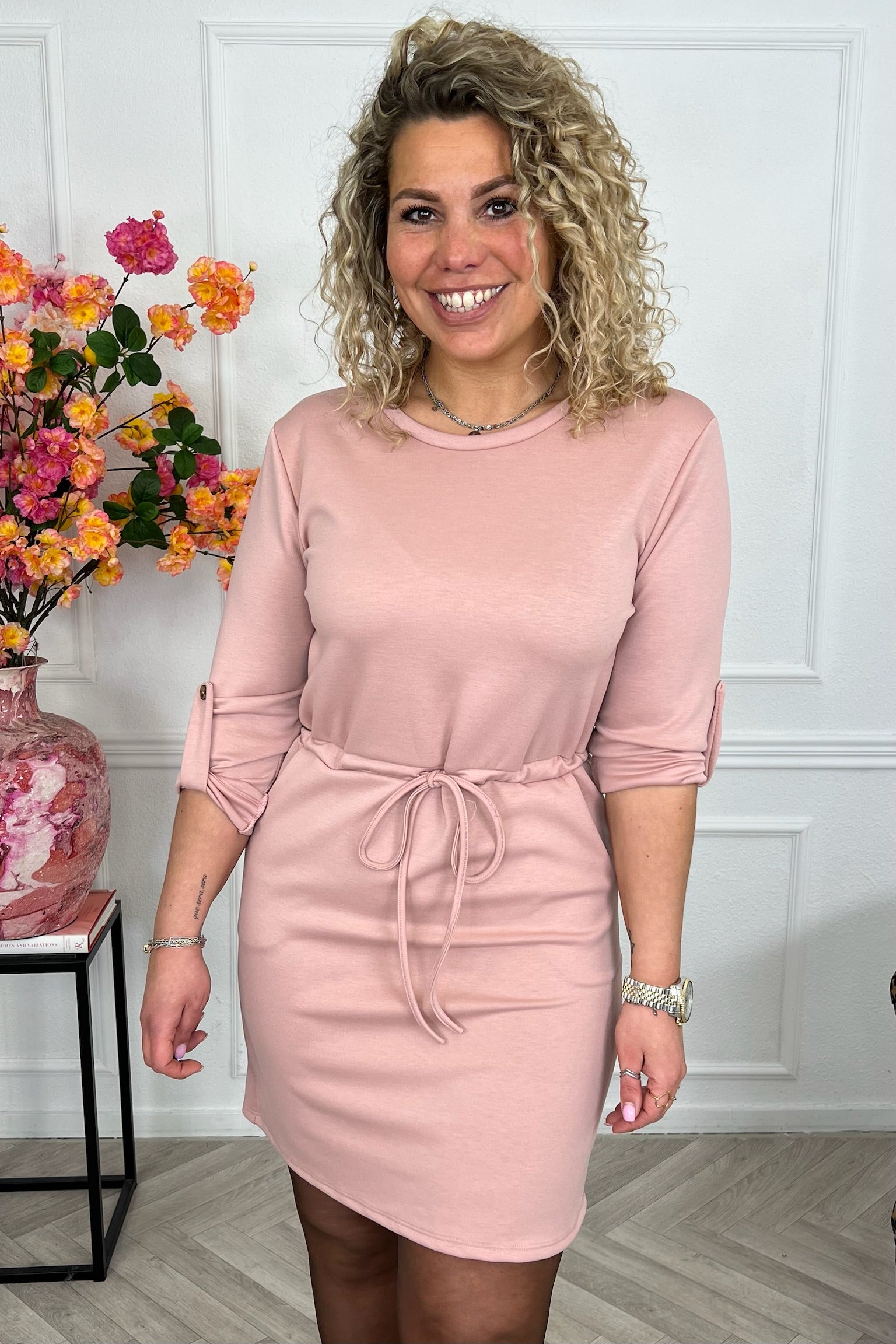 Deze perfecte sweater dress met langen mouwen zit heerlijk en is gemaakt van scuba materiaal! Shop hem in Old Pink!