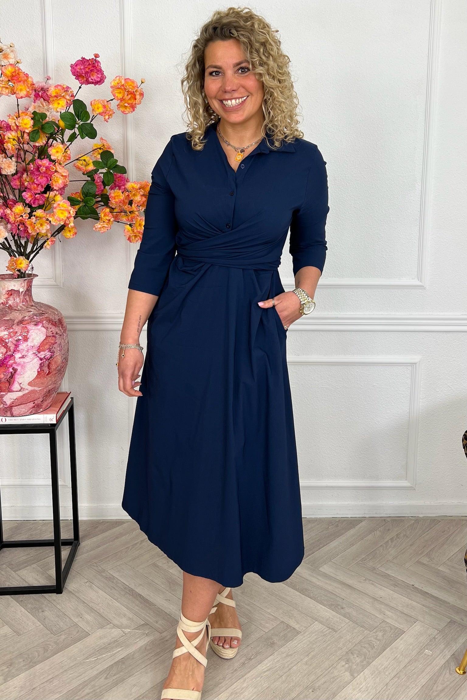 Ben jij ook zo gek op wrap dresses? Wij houden ervan! Shop deze heerlijke dress in travelmateriaal nu in het lang online! Shop hem in Navy!