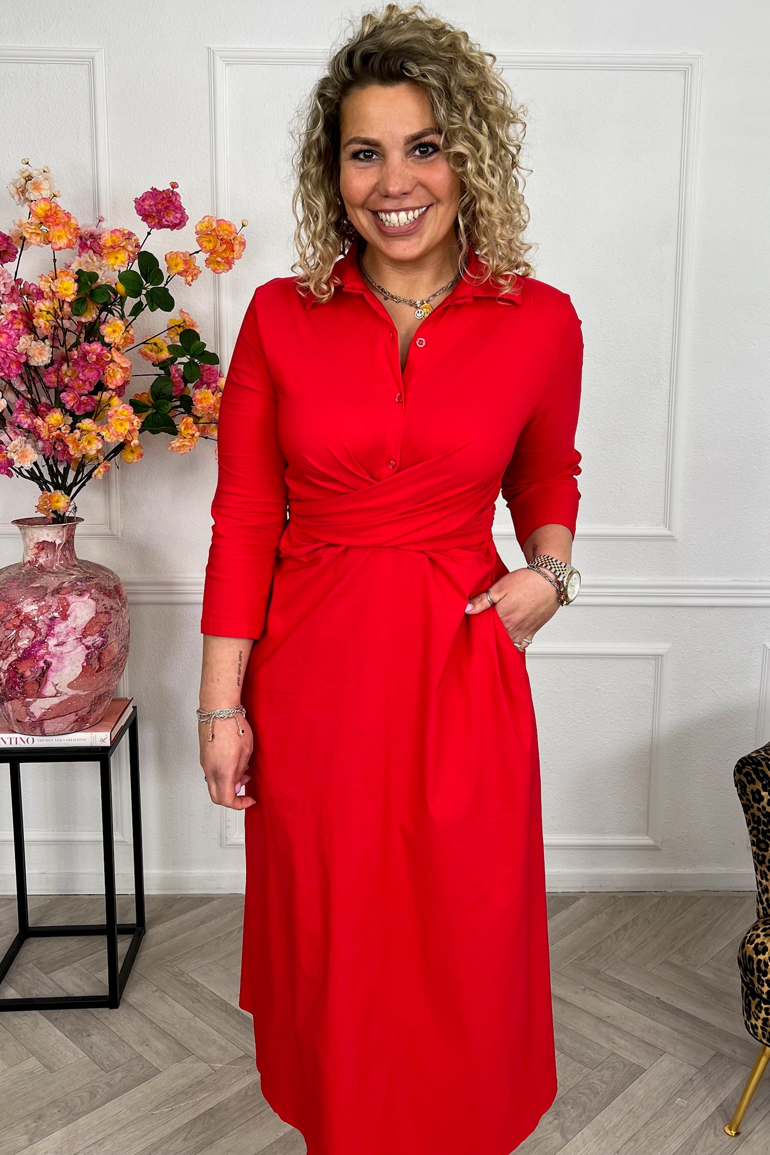 Ben jij ook zo gek op wrap dresses? Wij houden ervan! Shop deze heerlijke dress in travelmateriaal nu in het lang online! Shop hem in Red!