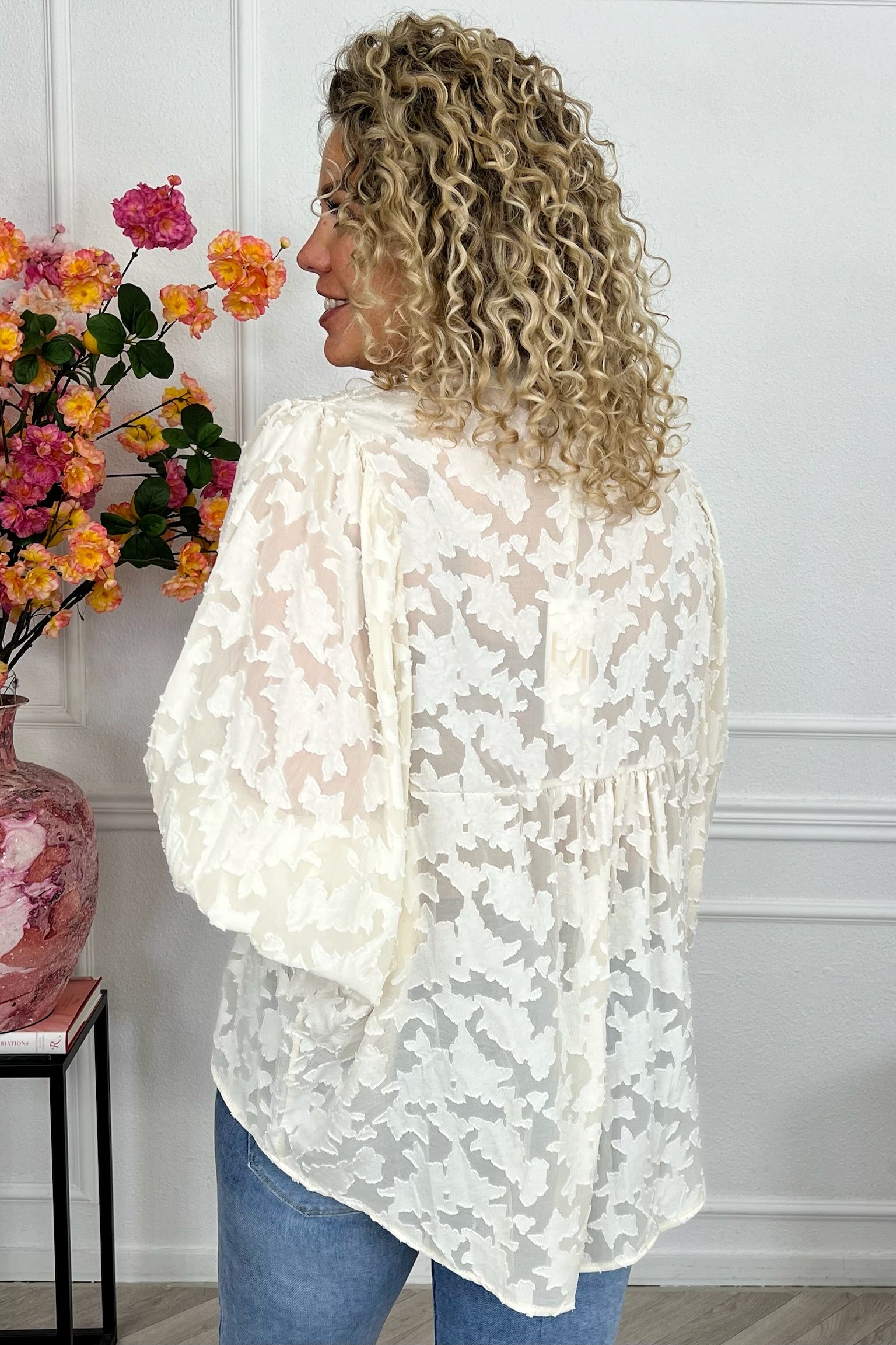 Sheer Leaves Blouse - Beige
