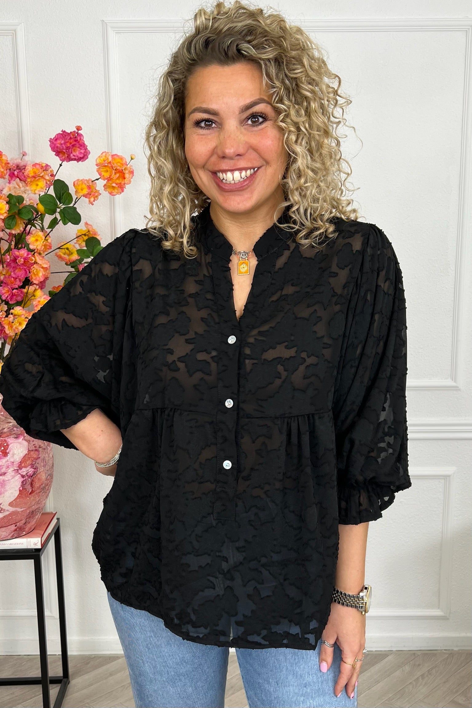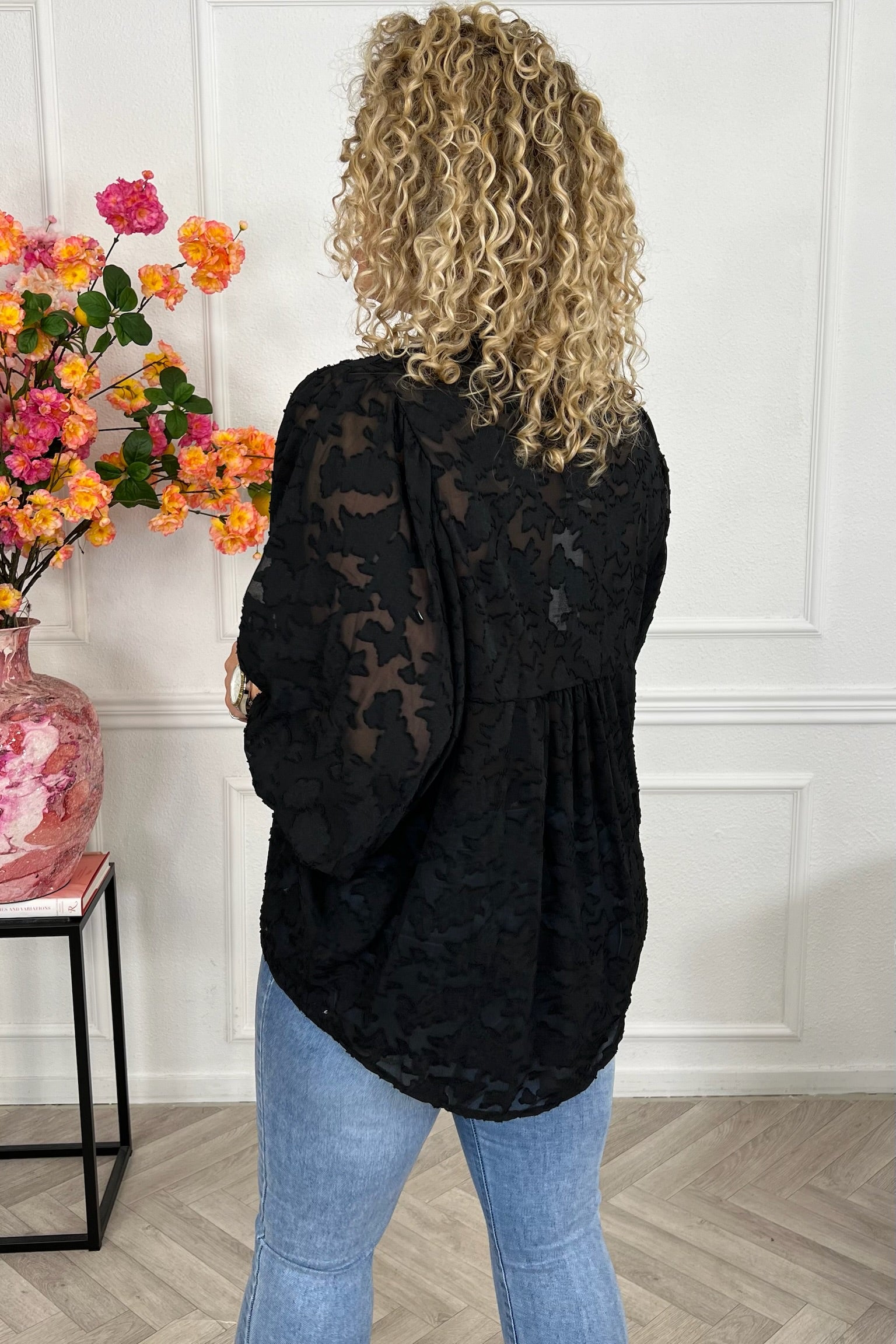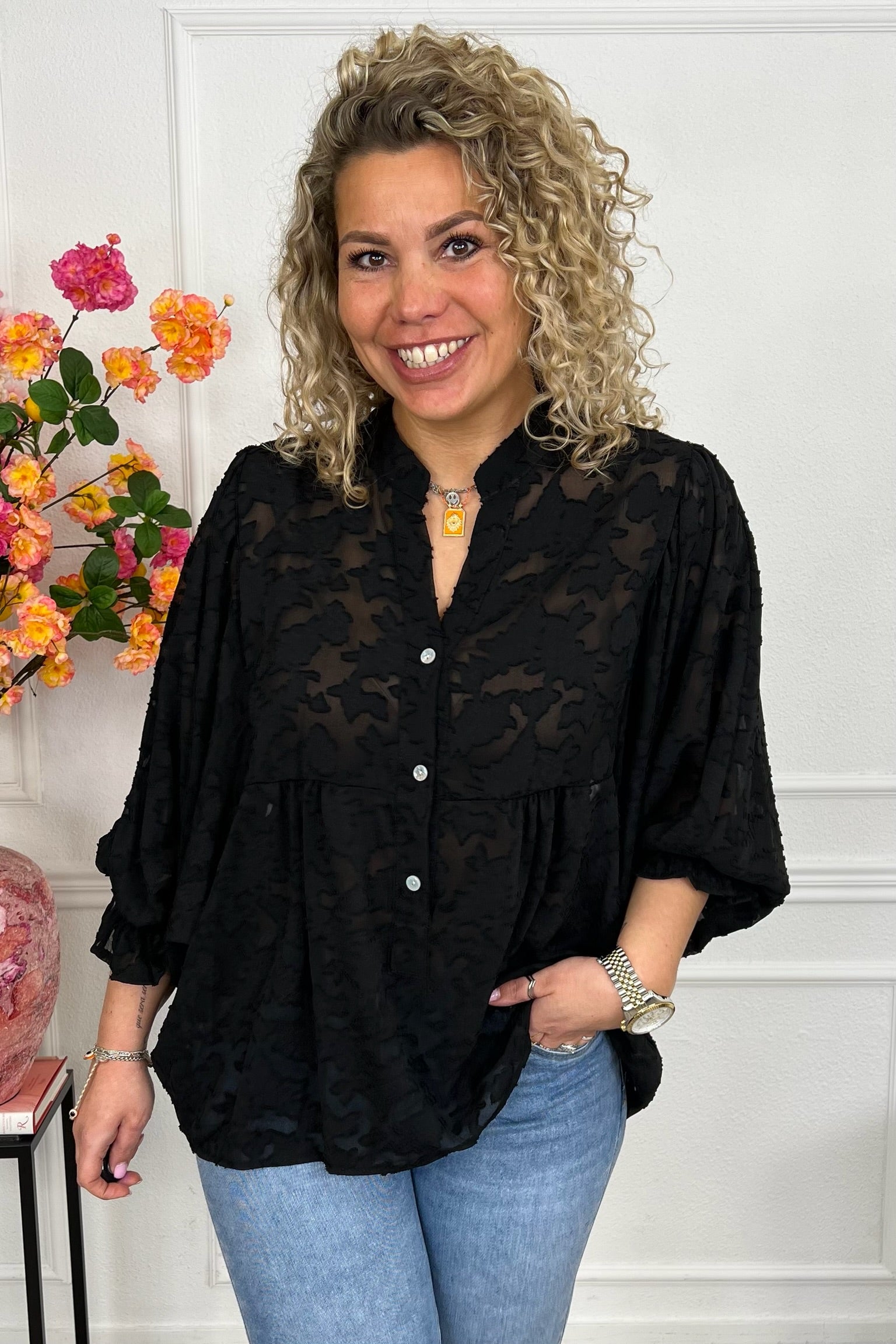 We hebben een superleuke blouse binnen met een mooie patroon! Shop hem nu in Black.