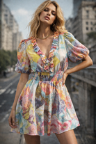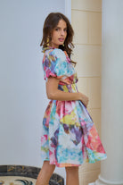 Een prachtig bloemen jurkje is altijd een goed idee! Super elegant en te stylen naar je eigen smaak! Shop de Short Colorful Ruffle Dress nu in Blue/Pink.