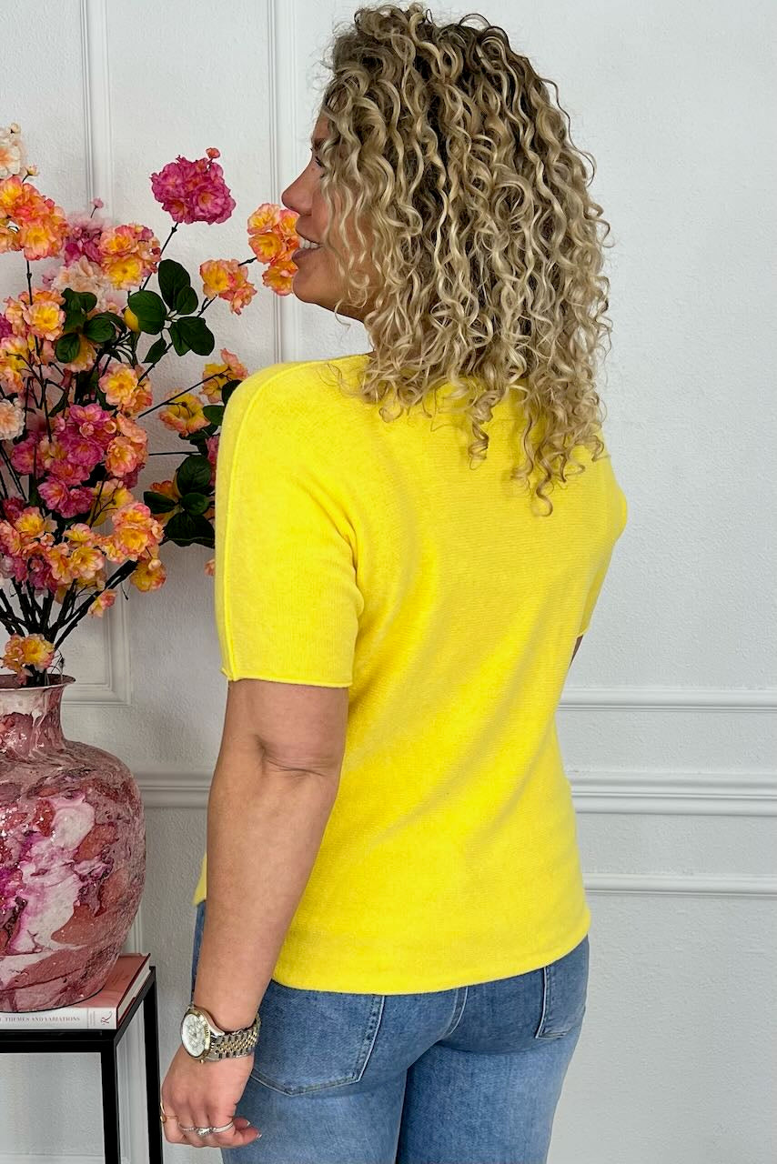 Short Sleeve Macy V Sweater - Yellow