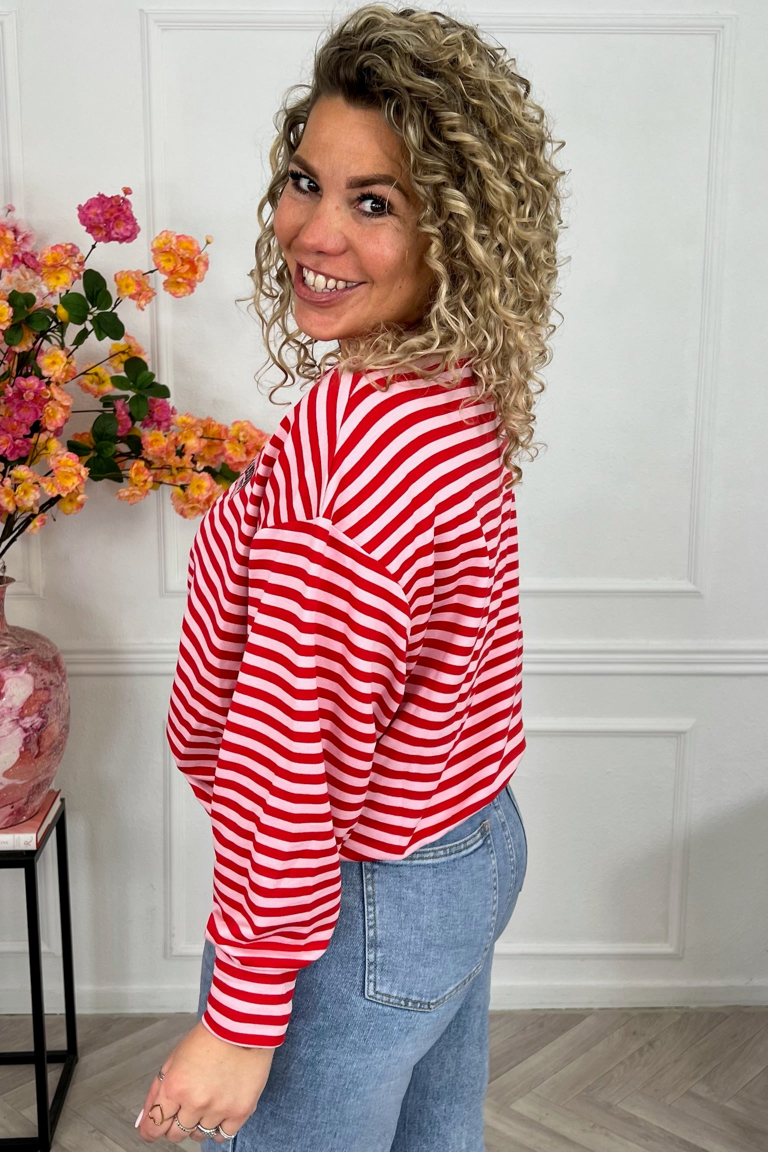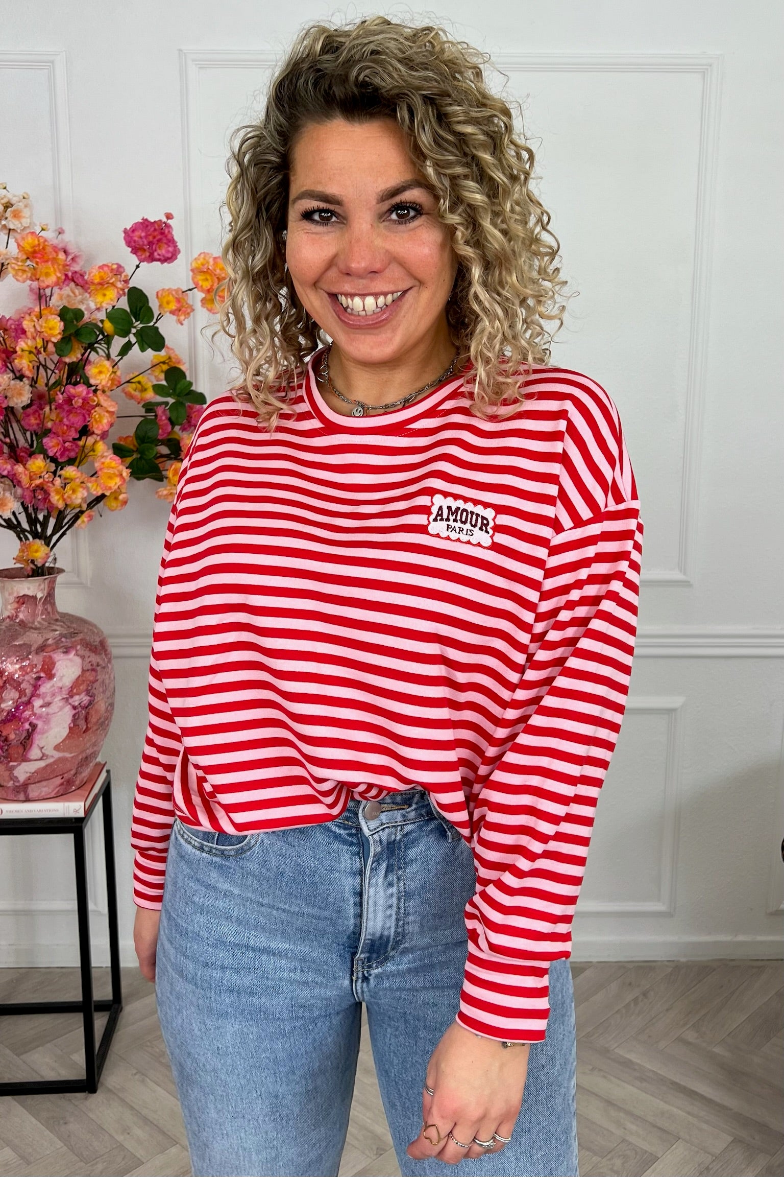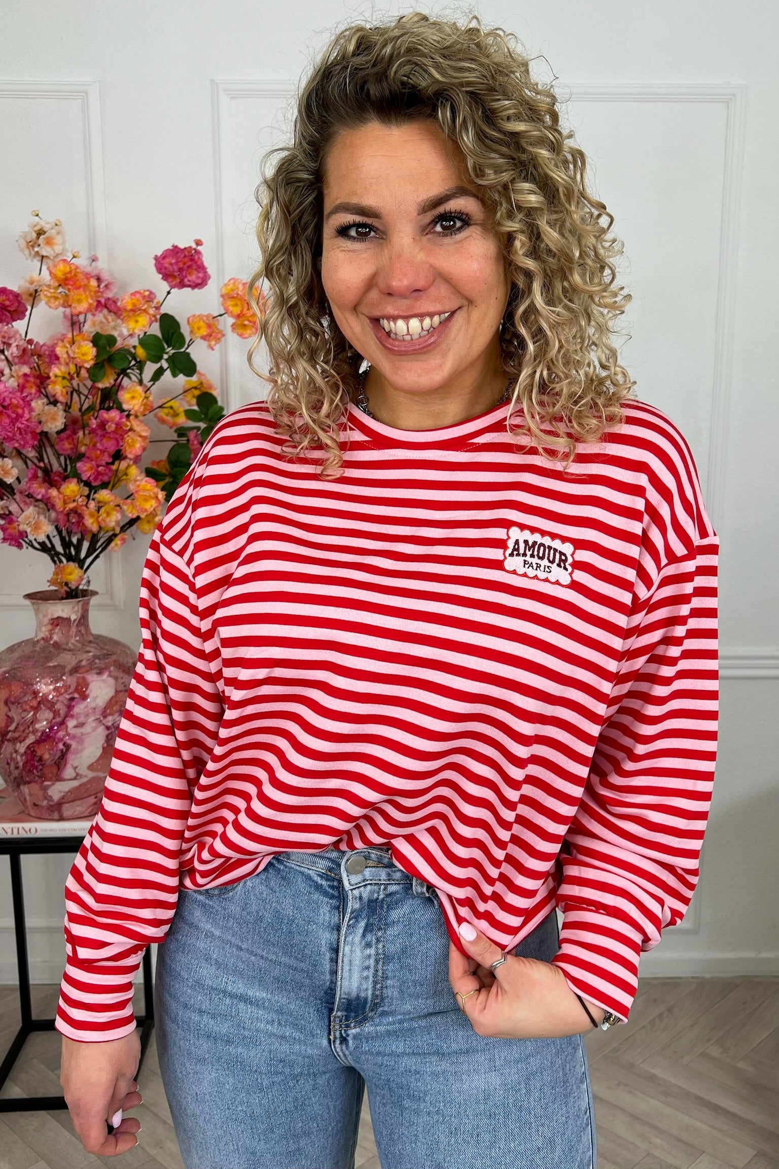 Dit heerlijke gestreepte shirt met mooi AMOUR-embleem erop, shop je in de vrolijkste kleurtjes, zoals red/pink!