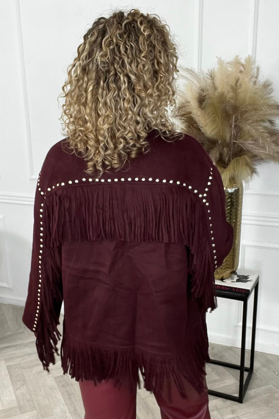 WAUW! Dit fantastische fringe jasje is handgemaakt! Shop de handmade fringe jacket nu snel in bordeaux.