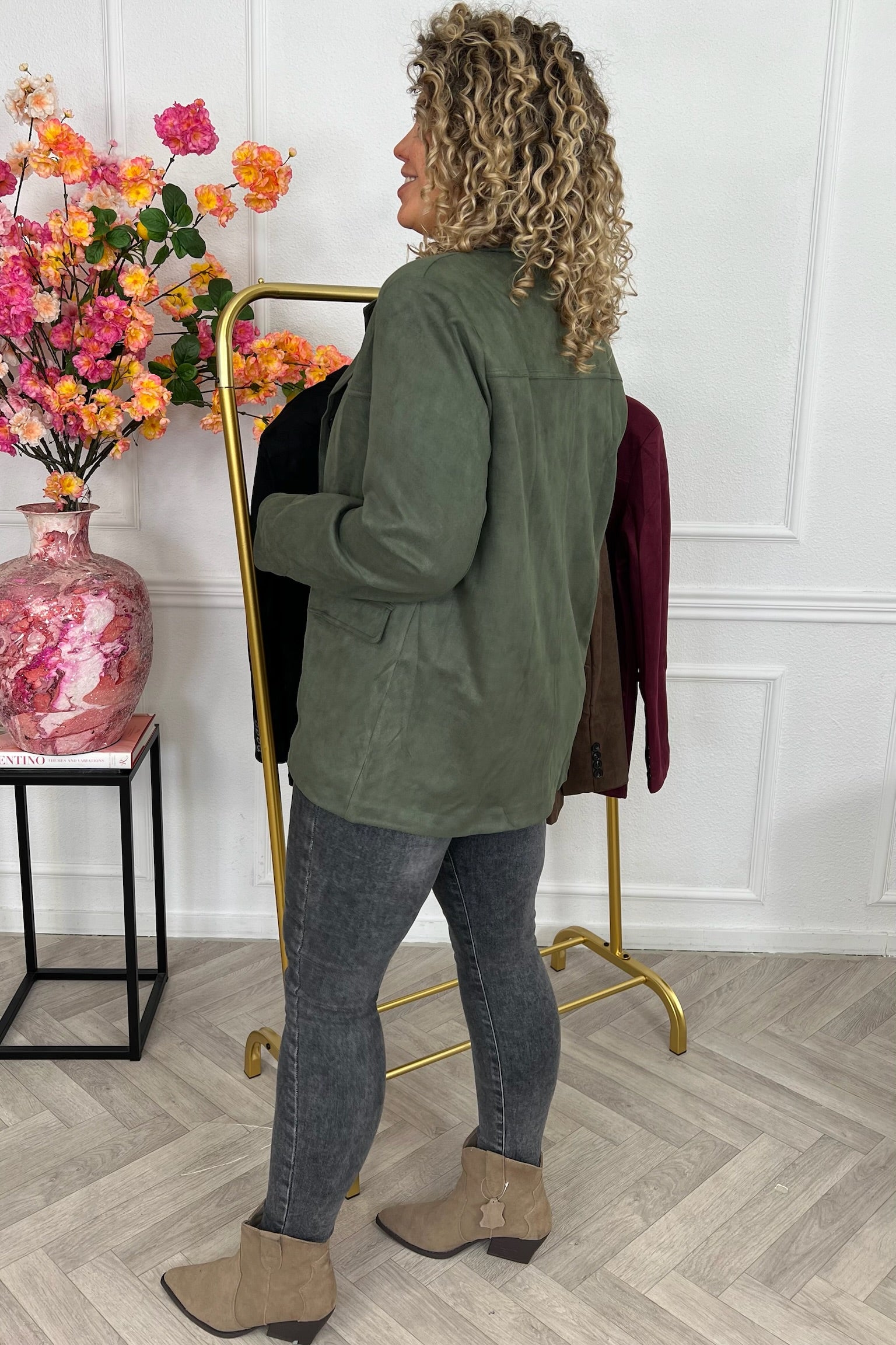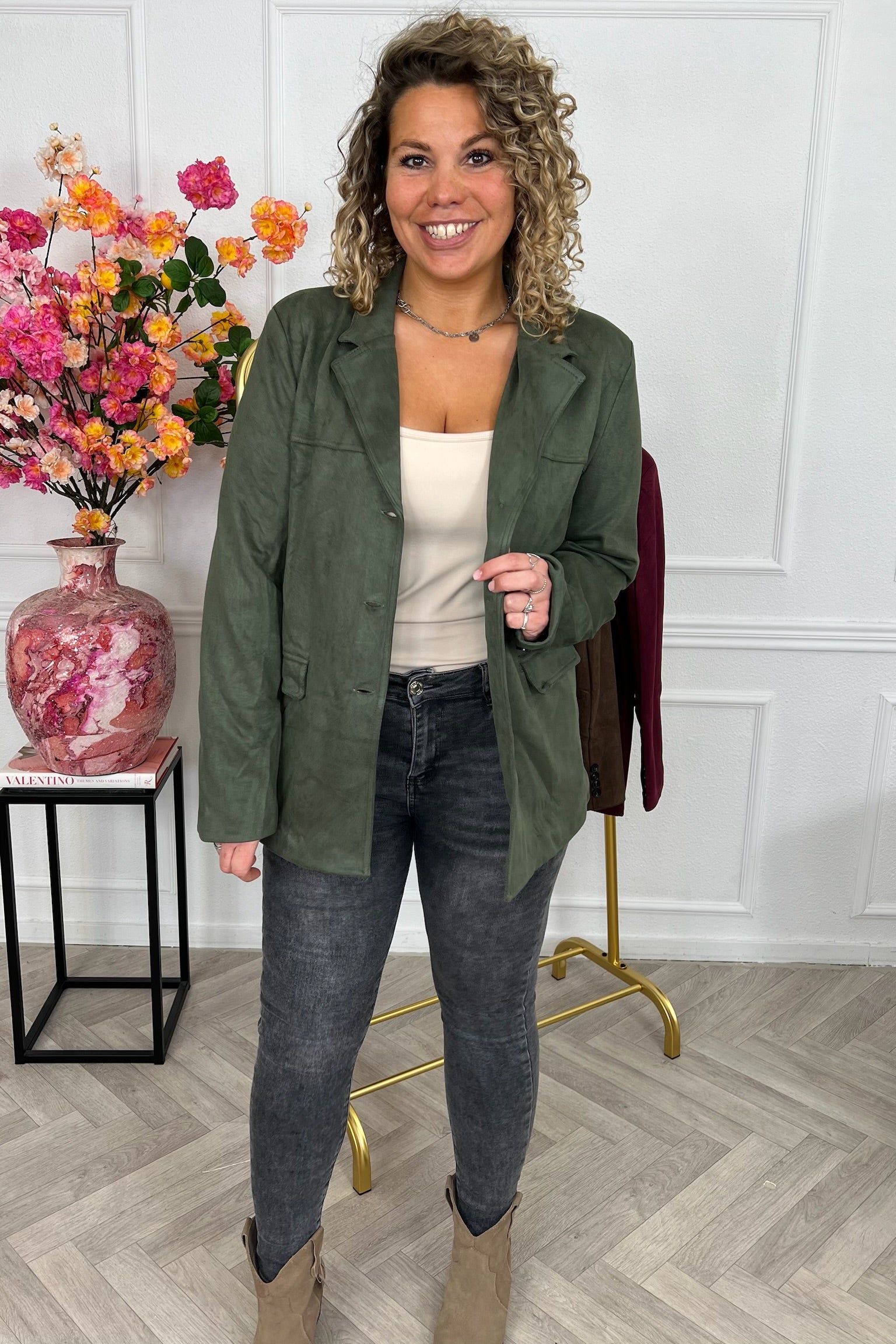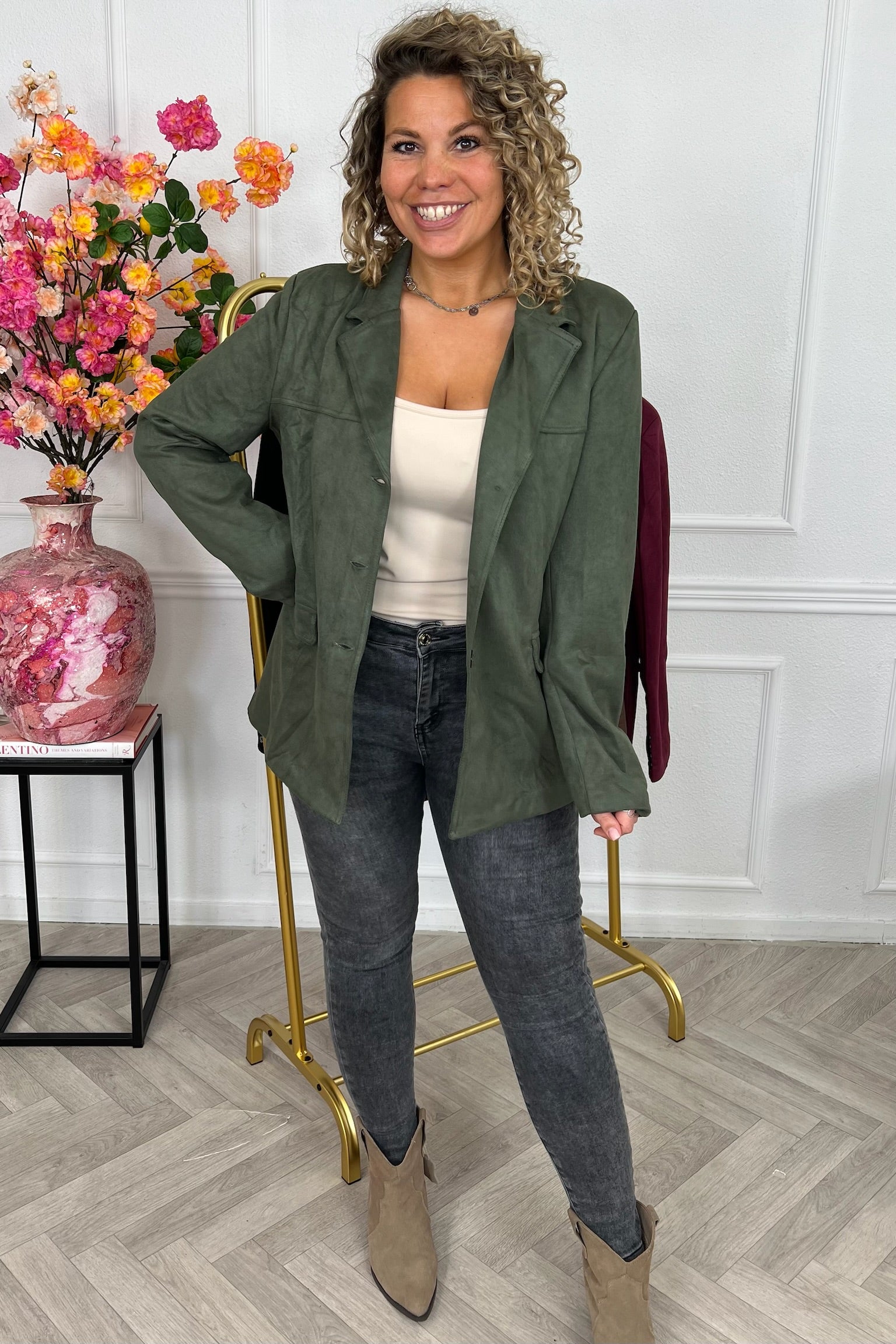 Deze blazer met een prachtige suedine stof staat nu online. Wees er snel bij! Shop hem nu in Armygreen!