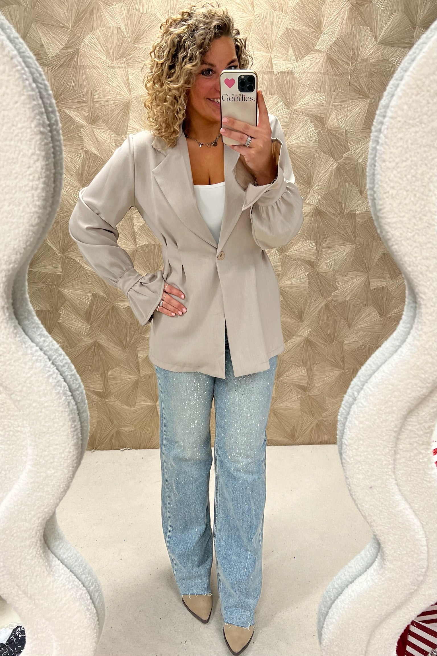 So Classy is deze blazer! Hij is getailleerd bij de taille en heeft een leuke ruffle mouw. Shop hem nu in taupe!