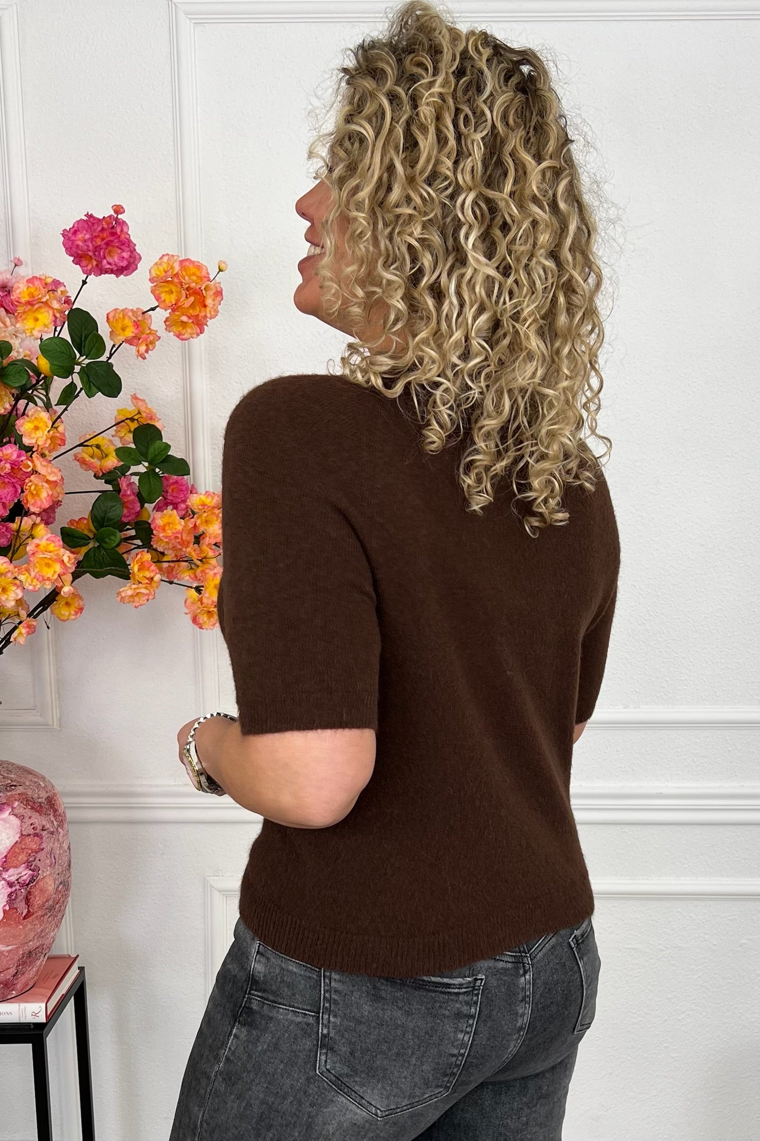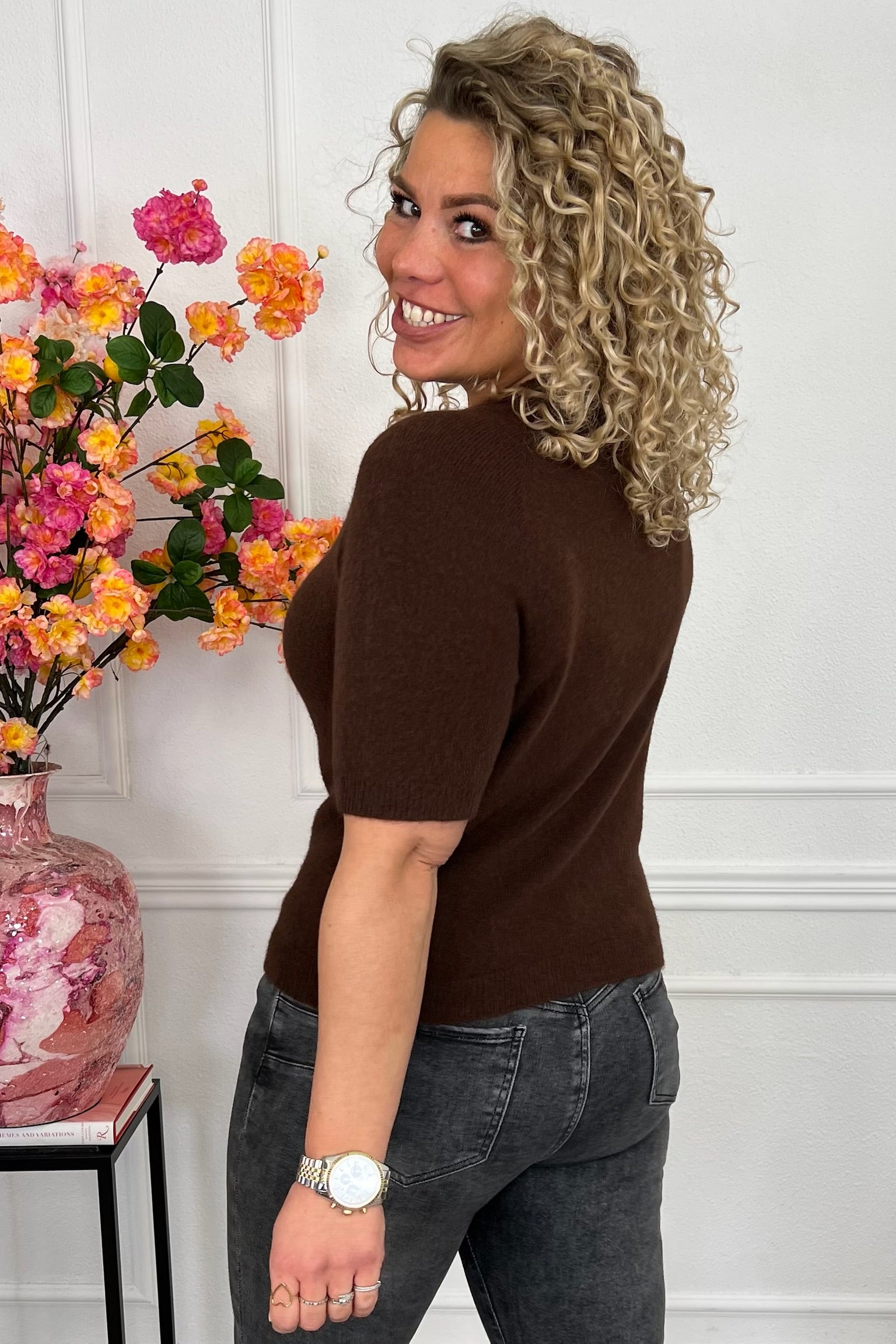 Deze prachtige spring sweater met kort mouwtje zit bijzonder comfy en ook nog eens super stylish. Combineer hem met een leuke jeans! Shop hem in Brown!