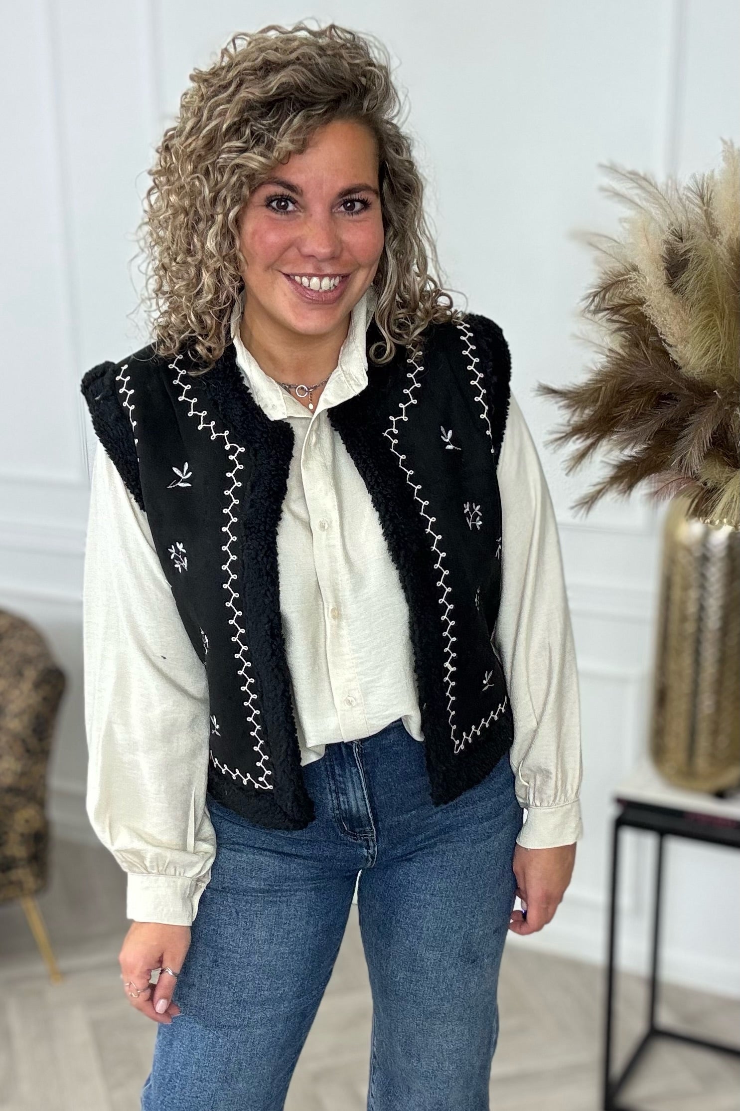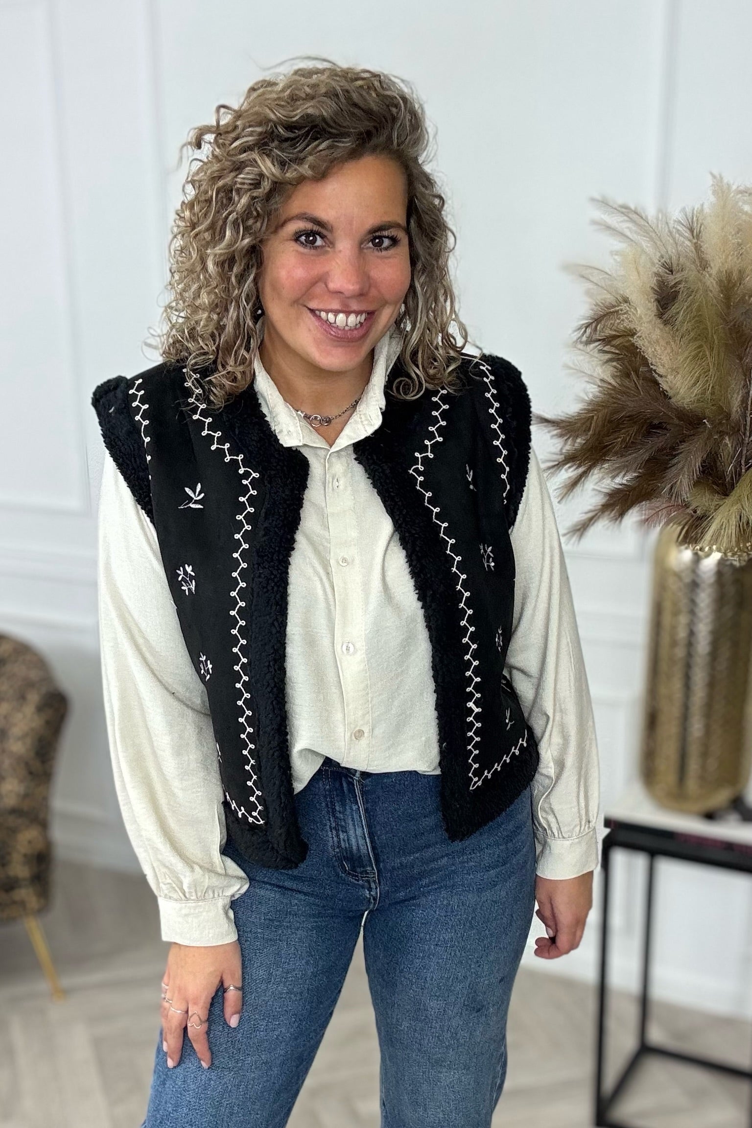 Dit prachtige gilet, met teddy binnenkant en randen, zit heerlijk zacht en heeft een stoere look! Shop hem in brown!