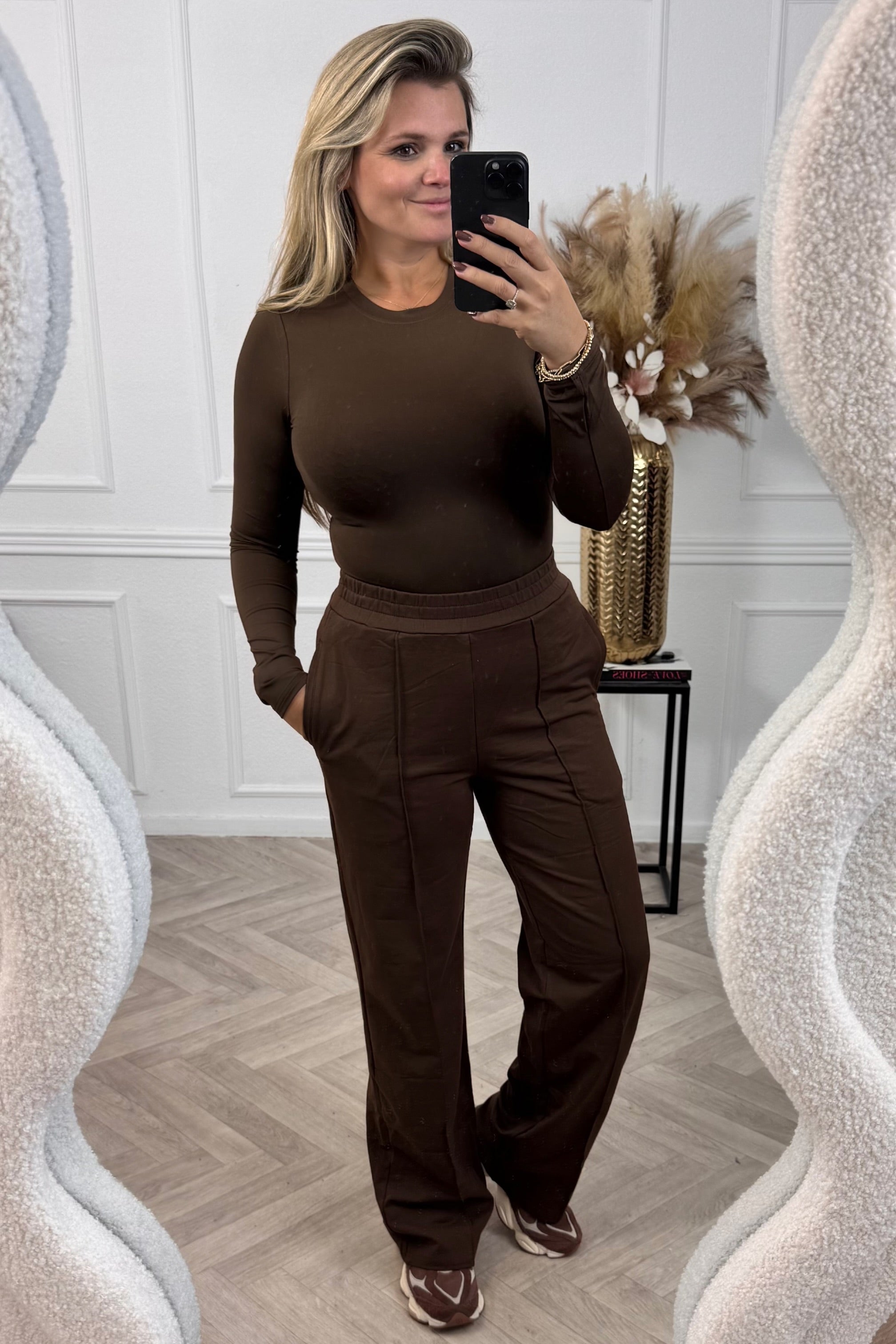 Deze fijne straight leg jogging pants is dé comfy pants voor dit jaargetij! Shop hem in trendy brown!