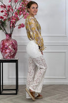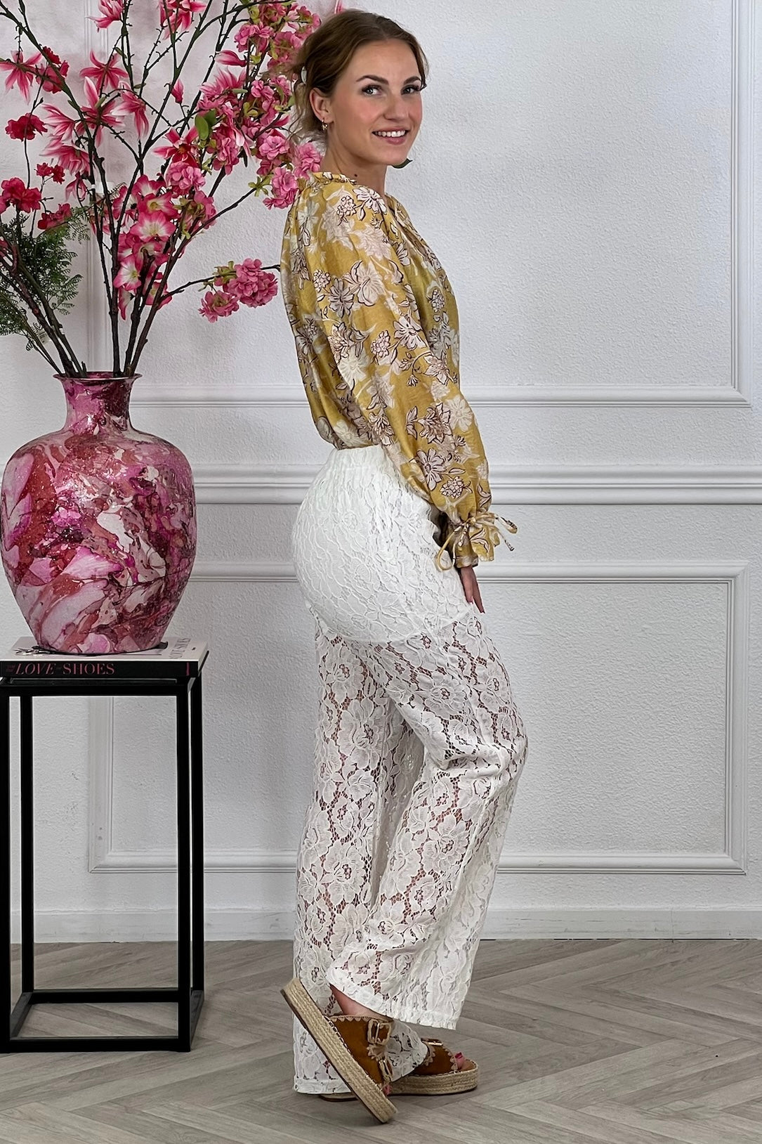 Wat een mooie lace pants! Met een geweldig bloemen patroon. Shop hem nu in ecru.