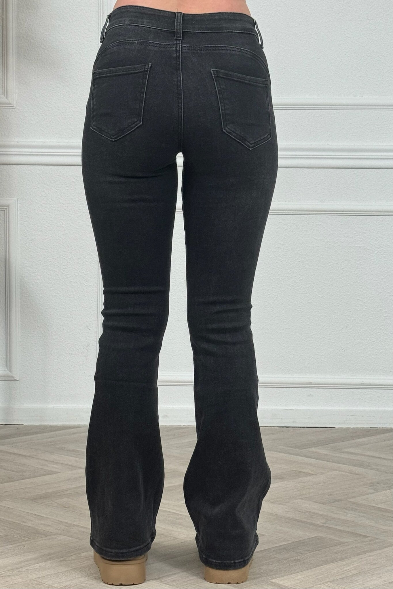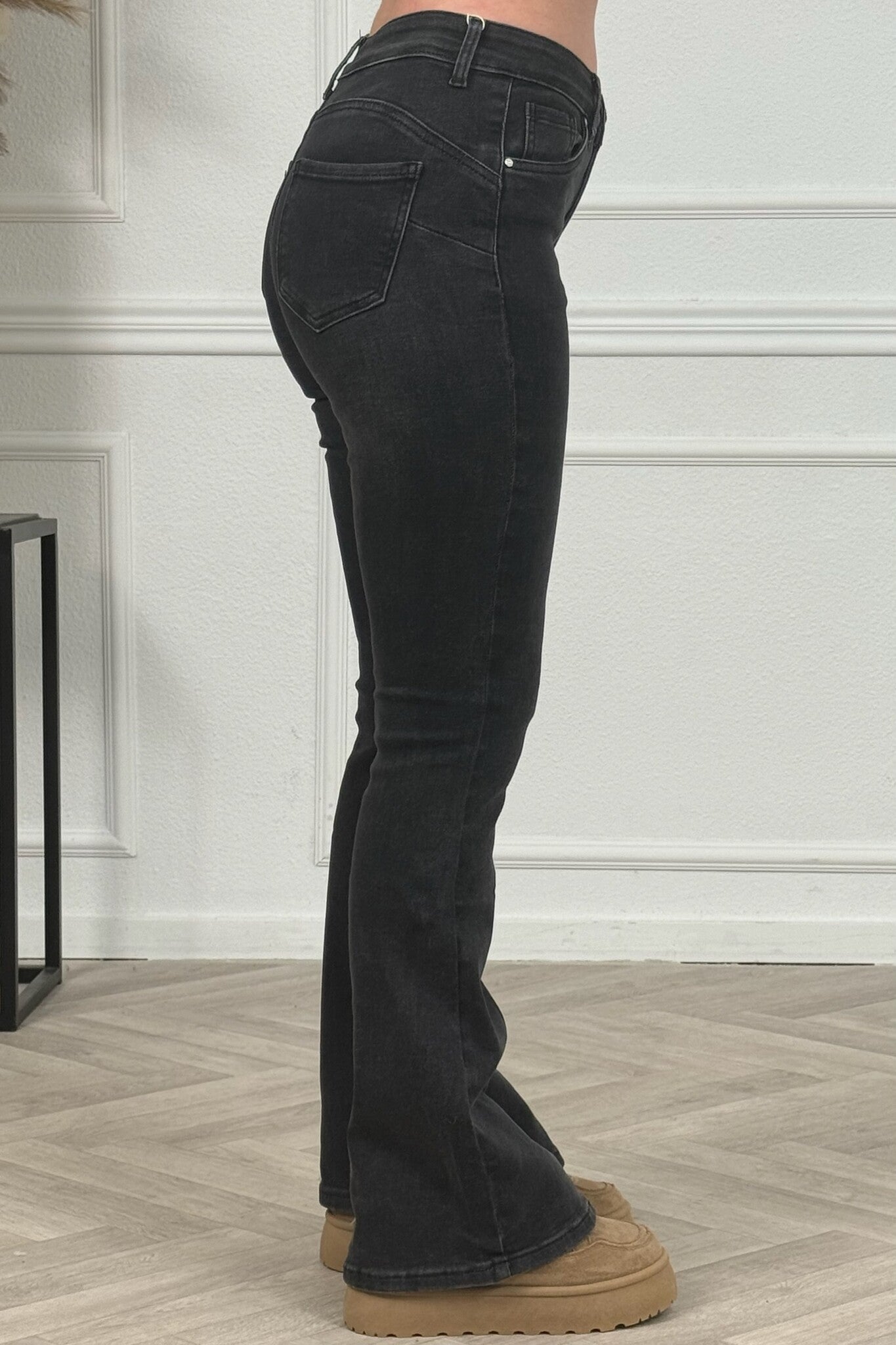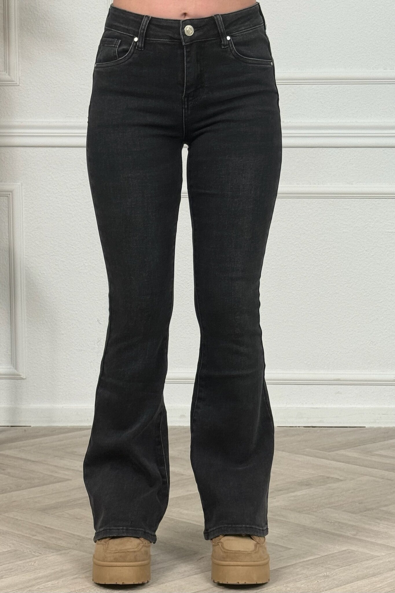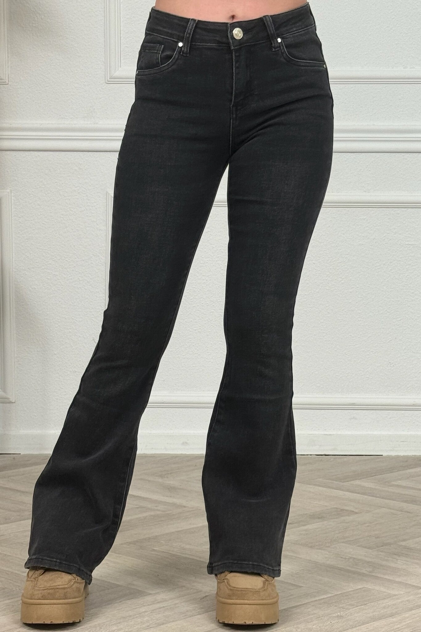 Een mooie Goodies flare jeans! Wat een fijne broek! Shop hem in dark grey/black!